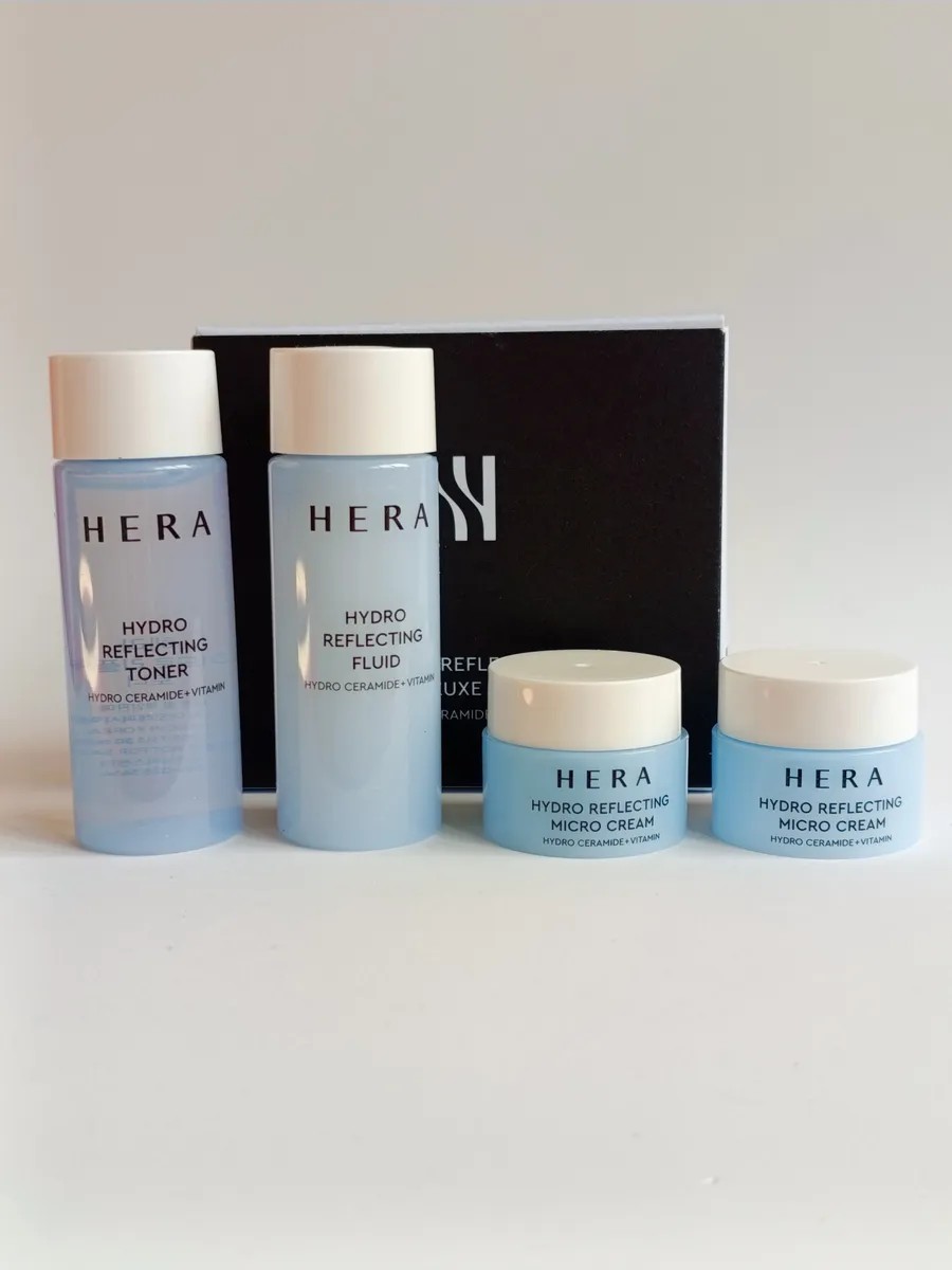 The HERA Hydro Reflecting Deluxe Kit, a moisturizing set of miniature face creams with a complex of ceramides and vitamins, provides hydration and radiance to dry, tired skin, leaving it healthy and elastic.