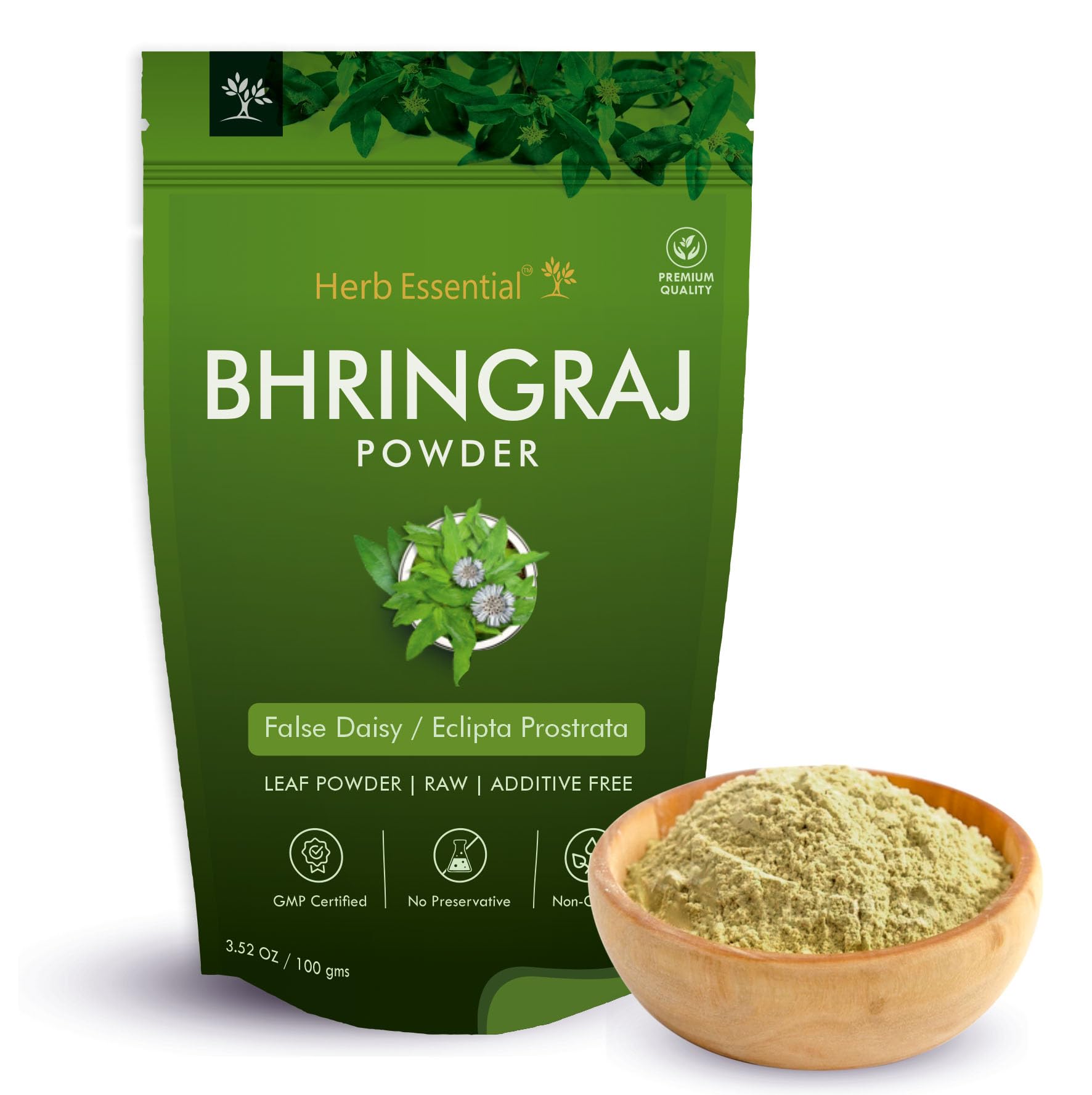 Herb Essential Organic Bhringraj Powder for Hair Care, 3.52 Oz (0.22 lbs), Pure Eclipta Alba Leaf Extract, Raw, Natural, Ayurvedic Herbal Powder for Hair, No Added Preservatives, Non-GMO