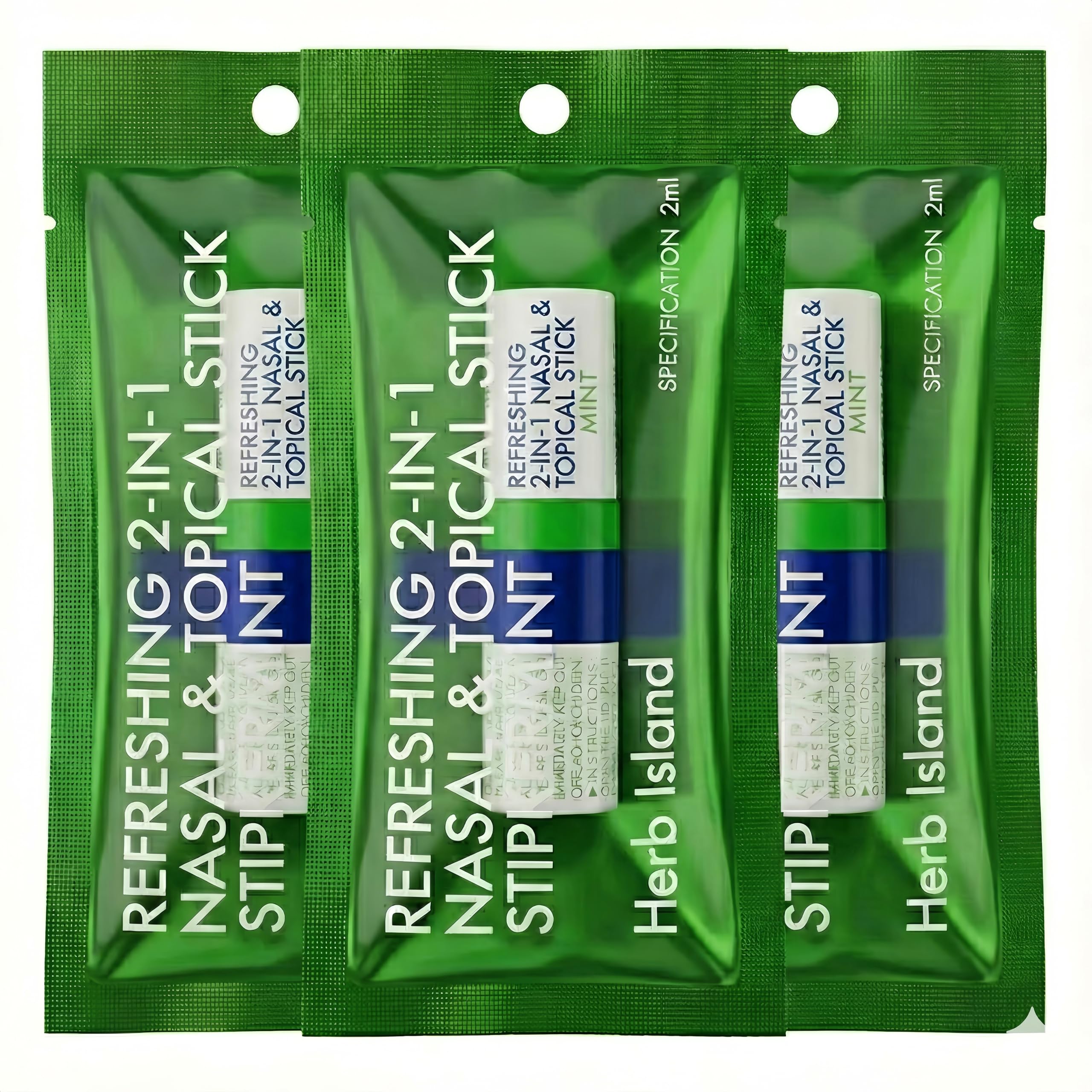 Herb Island 2 in 1 Nasal Stick Inhaler, Nose Refreshing VapoInhaler, Essential Oil Rub, On-The-Go, Freshing, Focus, Awake (3 PC Mint)