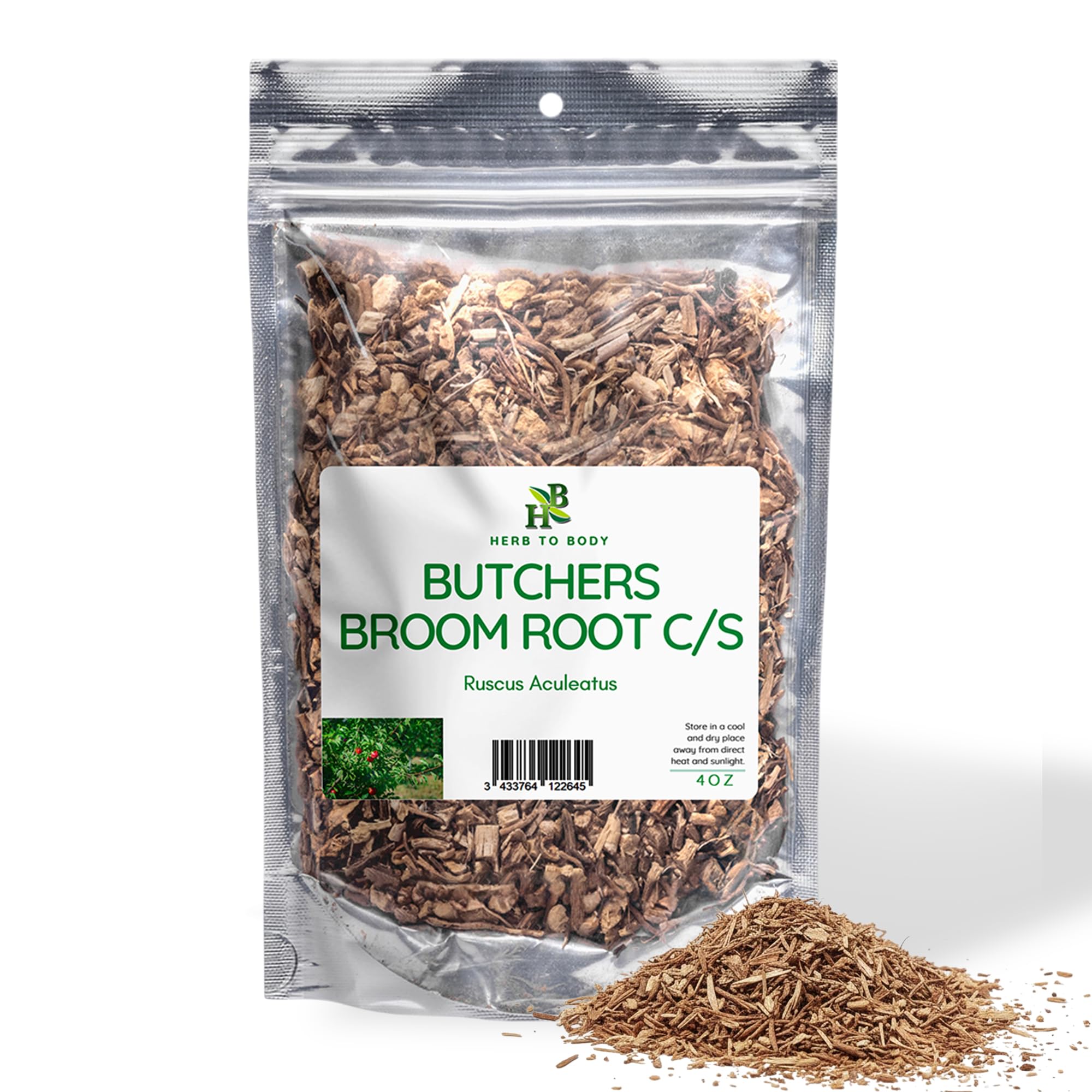 Herb To Body Butchers Broom Root C/S - 4oz Wildcrafted Ruscus Aculeatus for Herbal Tea Butchers Broom Tea and Traditional Herbal Preparations