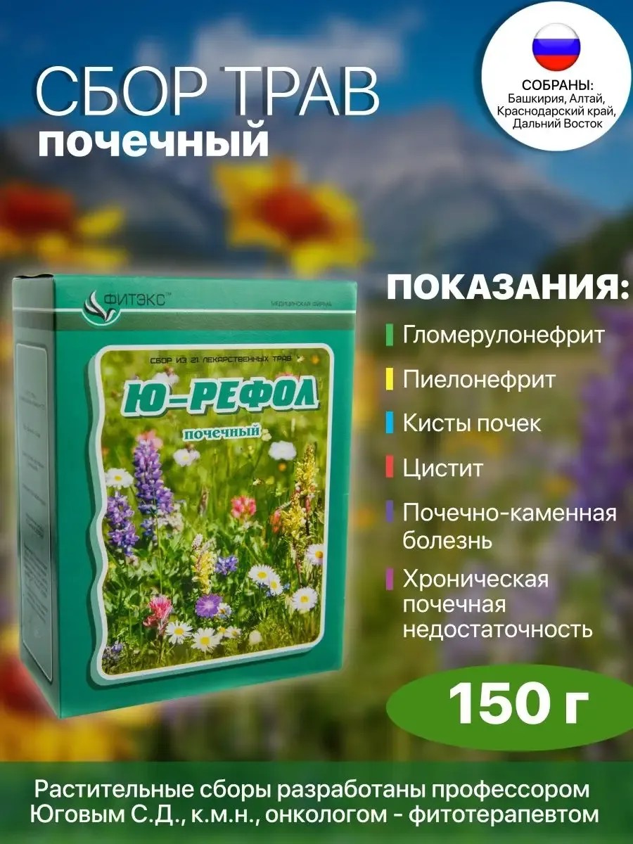 U-REFOL #21 Healthy Kidneys (Diuretic). INGREDIENTS (21 herbs): calendula, sage, birch leaves, woolly erva, elecampane, St. John's wort, corn silk, string bugle, knotweed, licorice, black poplar buds, lingonberry leaves, madder, juniper, horsetail, shepherd's purse, celandine, oregano, yarrow, elderberry, meadowsweet. This herbal collection for kidneys is recommended as a general tonic, improving the functional state of the urinary system. Kidney herbal tea is recommended for infectious diseases of the kidneys and urinary tract, as well as as an auxiliary means for supporting the kidneys in chronic diseases. Medicinal herbs can help with glomerulonephritis, pyelonephritis, renal edema, chronic renal failure, cystitis, and kidney stones. Herbal tea has a positive effect on the body's water-salt balance. A herbal tea for women and men (urological tea) is beneficial for the kidneys, acting as a diuretic and for kidney inflammation. A vitamin tea is recommended for both adults and children, but only in the appropriate dosage and after consulting with a physician. Herbal tea for "Healthy Kidneys" can be used as a preventative measure. This renal tea, containing medicinal herbs, dissolves kidney stones and removes toxins, sand, and salts from the body. It contains herbs proven in traditional medicine. Phytotherapy is a method of treating diseases using medicinal plants of plant origin. This dried herbal tea is 100% natural. Woolly erva promotes the elimination of toxins, restores kidney and bladder function, reduces hormonal imbalances, and normalizes water-salt metabolism. Lingonberry leaves promote the elimination of heavy metal salts and strengthen blood vessel walls. Juniper berries have anti-inflammatory and antimicrobial properties. The herbal blend includes herbs from Altai, the Caucasus, Bashkiria, the Krasnodar Territory, and the Far East. Directions: Pour 2 teaspoons of the herbal blend into one glass of boiling water in a thermos in the morning. Drink three times a day, 10 minutes before meals. The herbal blend can be used for tinctures at a ratio of 150 g per 1.2 liters. Herbal tincture. All YUREFOL products are certified and have a declaration of conformity.