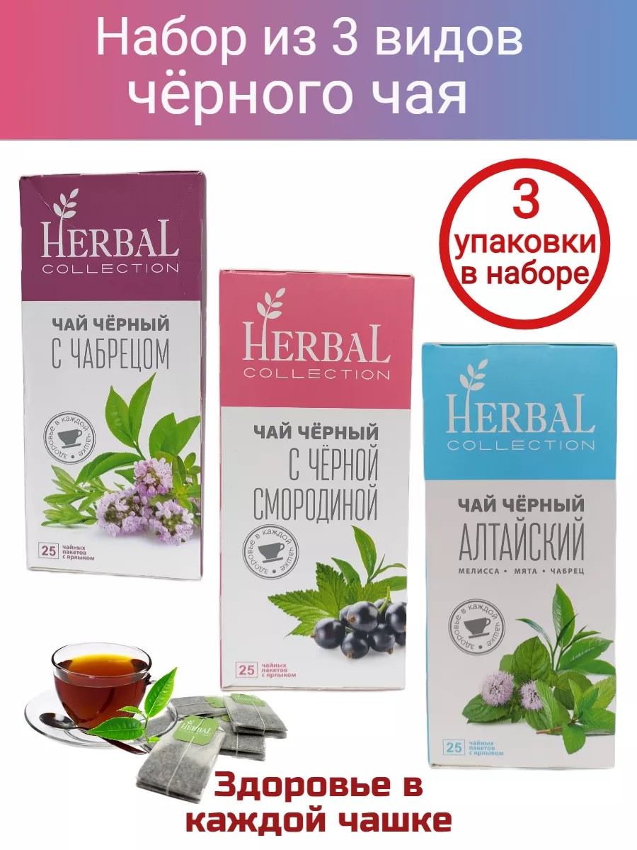 Набор черного чая из трех упаковок: "Алтайский", "С черной смородиной и "С чабрецом".