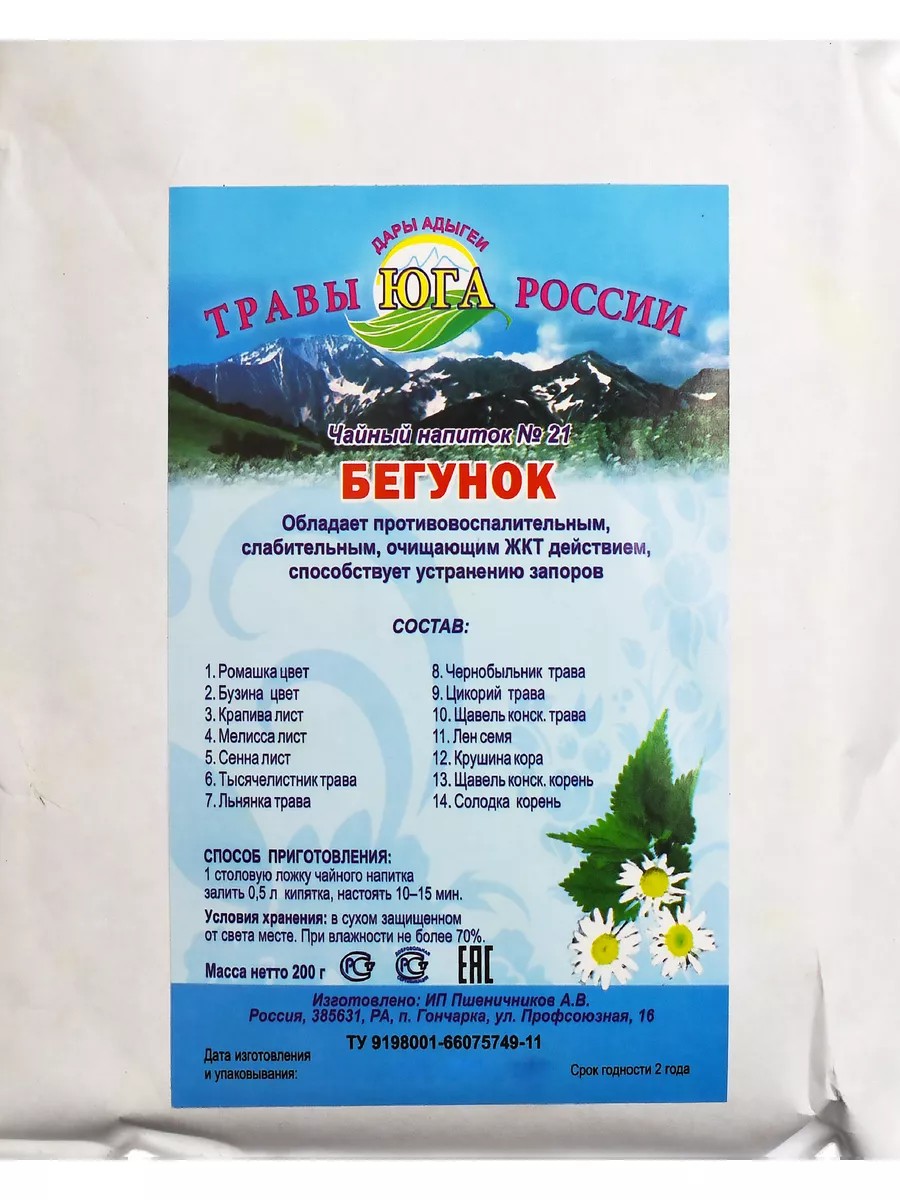 Травяной сбор чай слабительный против запоров Бегунок 200 гр