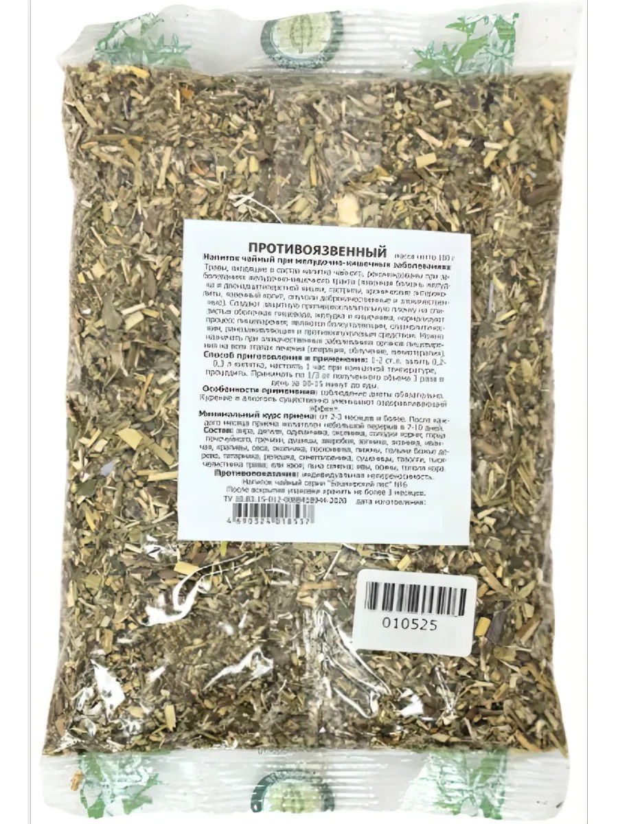 The herbs included in the tea drink are recommended for gastrointestinal tract diseases (peptic ulcer of the stomach and duodenum, gastritis, pancreatitis, chronic enterocolitis, ulcerative colitis, benign and malignant tumors). They create a protective anti-inflammatory film on the mucous membranes of the esophagus, stomach and intestines, normalize the digestion process; they are an analgesic, antispasmodic, wound-healing and antitumor agent.