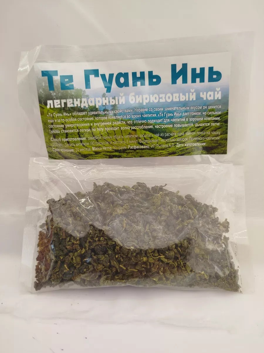Известный улун из провинции Фуцзянь представляет собой полуферментированный чай из крупных зрелых листьев. Скрученные листья высушиваются только сверху, оставаясь внутри свежими. В Китае Те Гуань Инь относится к сине-зелёным, бирюзовым чаям. Вкус- яркий насыщенный с цветочно-медовым травяным ароматом. Цвет настоя светло-зелёный с бирюзовым оттенком. Заваривать в пропорции 10г на 400мл воды 80-85 градусов. Первый раз настаивать одну минуту, а затем слить. Заварку можно использовать многократно.