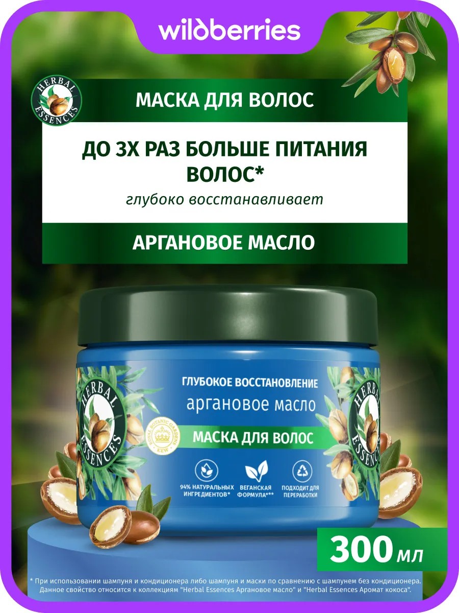 Наполните волосы энергией природы. Маска для волос Herbal Essences Аргановое масло Глубокое восстановление питает поврежденные волосы, делая их гладкими и блестящими, а насыщенный аромат средства зарядит вас энергией на весь день. Смесь растительных питательных нутриентов и аргановое масло восстановят поврежденные волосы после первого применения. Мы тщательно отбираем ингредиенты природного происхождения, чтобы привнести силу растений в вашу ванную комнату. Восстановите природную красоту волос и превратите уход за волосами в момент наслаждения вместе с коллекцией Аргановое масло Глубокое восстановление. Веганская формула.