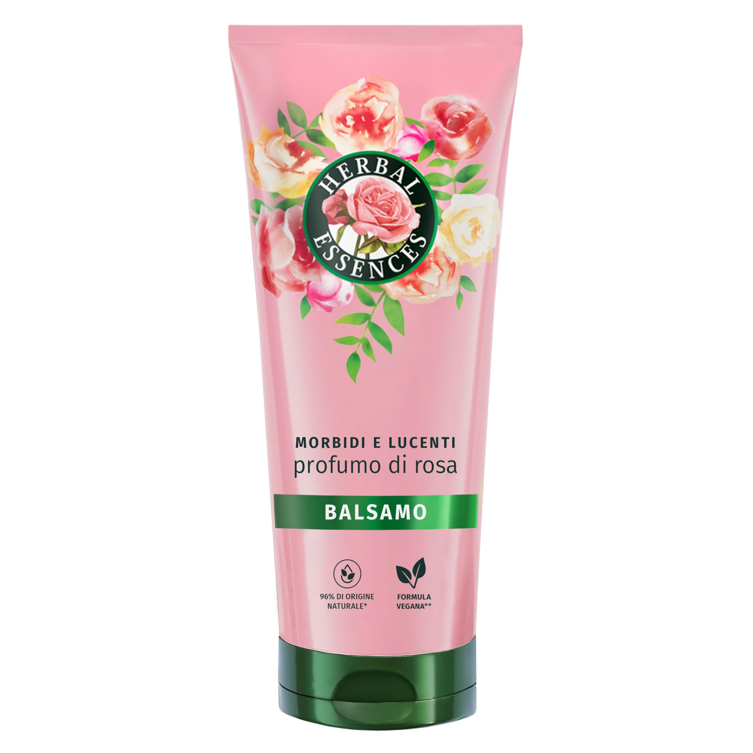 Get ready for days with a touch of rose. Herbal Essences Soft Shine Rose-Scented Balm helps transform dry hair into incredibly soft locks, while the floral fragrance envelops you in an intoxicating sensation. Our blend of plant-derived nutrients is enriched with real rose essences, hand-picked in Grasse, in the South of France. The result is a vegan formula that leaves hair irresistibly soft, day after day. Our extraordinarily creamy formula can be used two ways: as a rinse-out balm or as a leave-in balm, so you can enjoy its delicate softness even longer while using less water. We blend a careful selection of naturally sourced ingredients to bring the beauty of botanicals into your shower. Restore your hair's natural beauty and awaken the senses with the complete routine of our Soft Shine Rose-Scented Balm. ( Refers to the ingredients in the formula) INGREDIENTS Aqua, Stearyl Alcohol, Behentrimonium Chloride, Cetyl Alcohol, Bis-Aminopropyl Dimethicone, Isopropyl Alcohol, Parfum, Benzyl Alcohol, Sodium Benzoate, Disodium EDTA, Tetramethyl Acetyloctahydronaphthalenes, Polysorbate 20, Citric Acid, Hexamethethylene Ylindanopyran, Histidine, Dimethyl Phenethyl Acetate, Juniperus Virginiana Oil, Hexyl Cinnamal, Geraniol, Rose Ketones, Alpha-Isomethyl IononeFormula with 96 naturally derived ingredients : Enriched with rose essences hand-picked in Grasse, in the South of France. Cruelty-free and vegan ( Refers to the ingredients in the formula). Up to 2x more nourishing : Discover the complete routine of the soft and shiny line, with a rose fragrance ( with use of shampoo and conditioner as a leave-in treatment, or shampoo and hair mask versus shampoo without conditioner). Soft and shiny hair: Treat yourself to extraordinarily soft, shiny, and fragrant hair, day after day. Incredibly silky: Our effective formula can be used as a rinse-out or leave-in conditioner for irresistibly soft hair, day after day. Boost your mood, naturally: Indulge in the natural, vibrant scent of rose, scientifically proven to improve your mood. ( via multi-mode research).Herbal Essences Baume doux et brillant, pour cheveux secs, avec essence de rose, végétalien, 200 ml rosesDESCRIPTION DU PRODUIT DESCRIPTION DU PRODUIT Préparez-vous pour des journées plus colorées de rose. Le baume Herbal Essences Doux et Brillant, au parfum de rose, aide à transformer les cheveux secs en cheveux incroyablement doux, tandis que le parfum floral vous enveloppe dans une sensation enivrante. Notre mélange de nutriments d'origine végétale est enrichi en véritables essences de rose, récoltées à la main à Grasse, dans le sud de la France. Le résultat est une formule végétalienne qui laisse les cheveux irrésistiblement moelleux, jour après jour. Notre formule, extraordinairement crémeuse, peut être utilisée de deux façons : comme baume à rincer ou comme baume sans rinçage, vous pouvez ainsi profiter de sa douceur délicate encore plus longtemps en réduisant l'utilisation d'eau. Nous mélangeons une sélection minutieuse d'ingrédients d'origine naturelle pour apporter la beauté des produits botaniques dans votre douche. Restituez à vos cheveux leur beauté naturelle et réveillez les sens en utilisant toute la routine de notre ligne Souple et Brillant, au parfum de rose. ( Se réfère aux ingrédients de la formule) INGRÉDIENTS Aqua, stéaryl alcohol, behentrimonium chlororide, cetyl alcohol, bis-Aminopropyl Dimethicone, isopropyl alcohol, parfum, benzyl alcohol, sodium benzoate, disodium EDTA, tétramethyl acetyloctahydronaphthalenes, polysorbate 20, citric Acid, Hexaméthéthylène ylindanopyran, Histidine, Dimethyl Phenethyl Acétate de phénethyl, Juniperus Virginiana Oil, Hexyl Cinnamal, Géraniol, Rose Ketones, Alpha-Isomethyl IononeFormule avec 96 d'ingrédients d'origine naturel : enrichie en essences de roses récoltées à la main à Grasse, dans le sud de la France. Cruelty-free et végétalien ( Se réfère aux ingrédients de la formule). Jusqu'à 2 fois plus nourrissant : découvrez la routine complète de la ligne douce et brillante, au parfum de rose ( avec utilisation de shampooing et après-shampoing comme traitement sans rinçage, ou de shampoing et masque pour cheveux par rapport à un shampooing sans après-shampoing). Cheveux doux et brillants : offrez-vous des cheveux extraordinairement doux, brillants et parfumés, jour après jour. Incroyablement soyeux : notre formule efficace peut être utilisée comme baume à rincer ou sans rinçage pour des cheveux irrésistiblement doux, jour après jour. Améliorez votre humeur, naturellement : offrez-vous le parfum naturel et vif de rose, scientifiquement prouvé pour améliorer votre humeur. ( via des recherches multimodes).