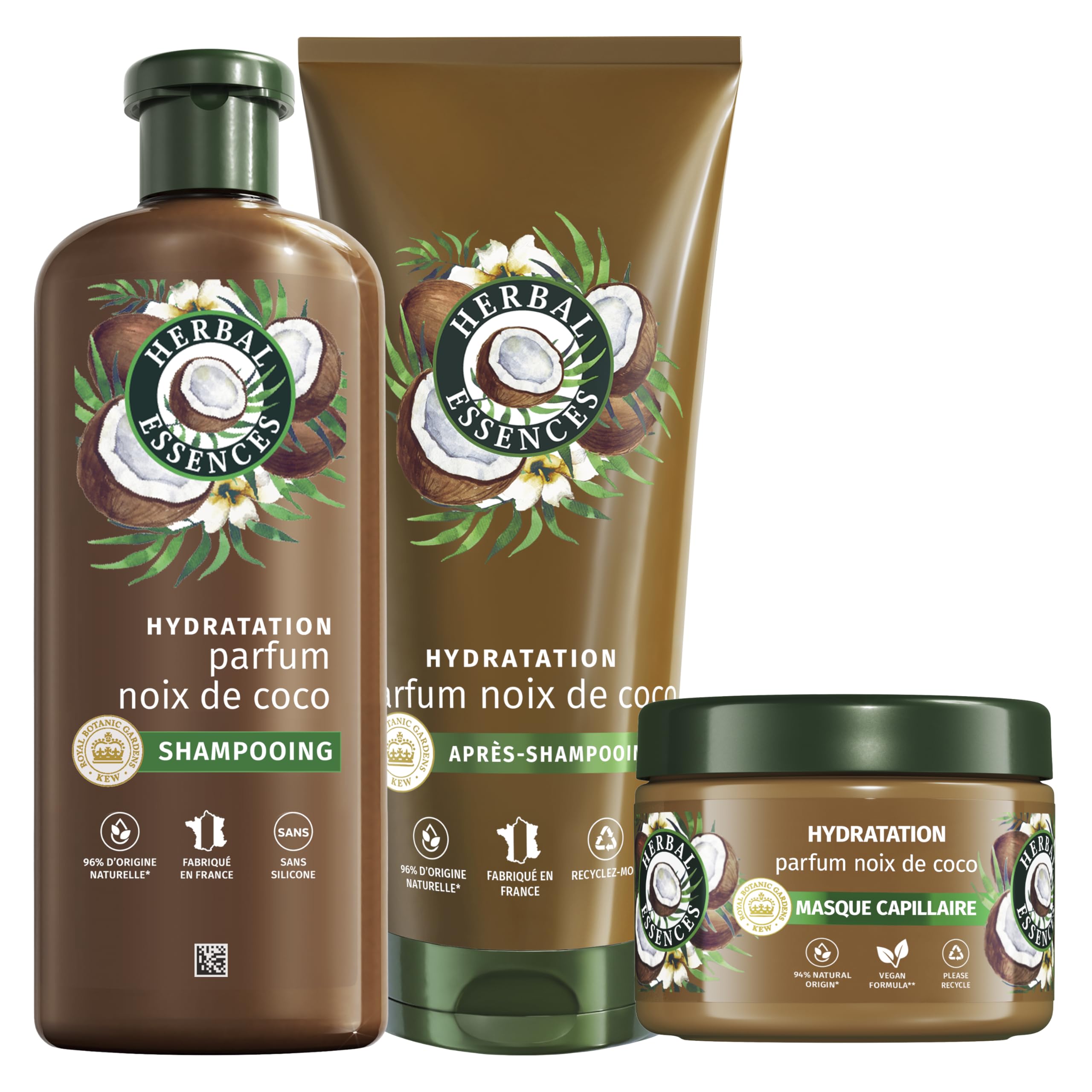 Herbal Essences Routine Hydratation Parfum Coco Avec Shampoing 250ml Apr s-Shampoing 200ml Et Masque 500ml. Aide Nourrir et Lisser Pour Des Cheveux Doux. Ingr dients d'Origine Naturelle* V gan