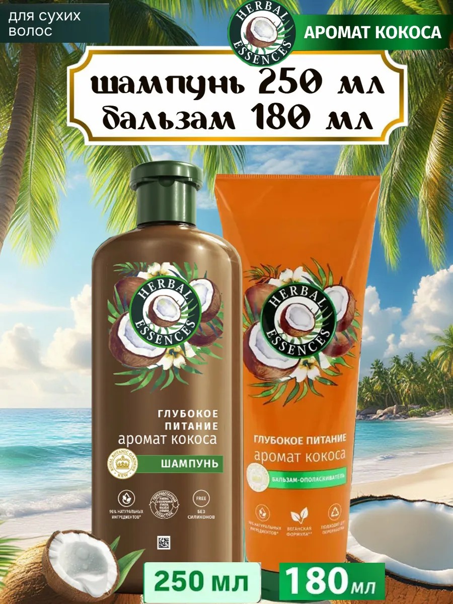 Herbal Essences Шампунь 250 мл и Бальзам 180 мл Аромат кокоса для волос
