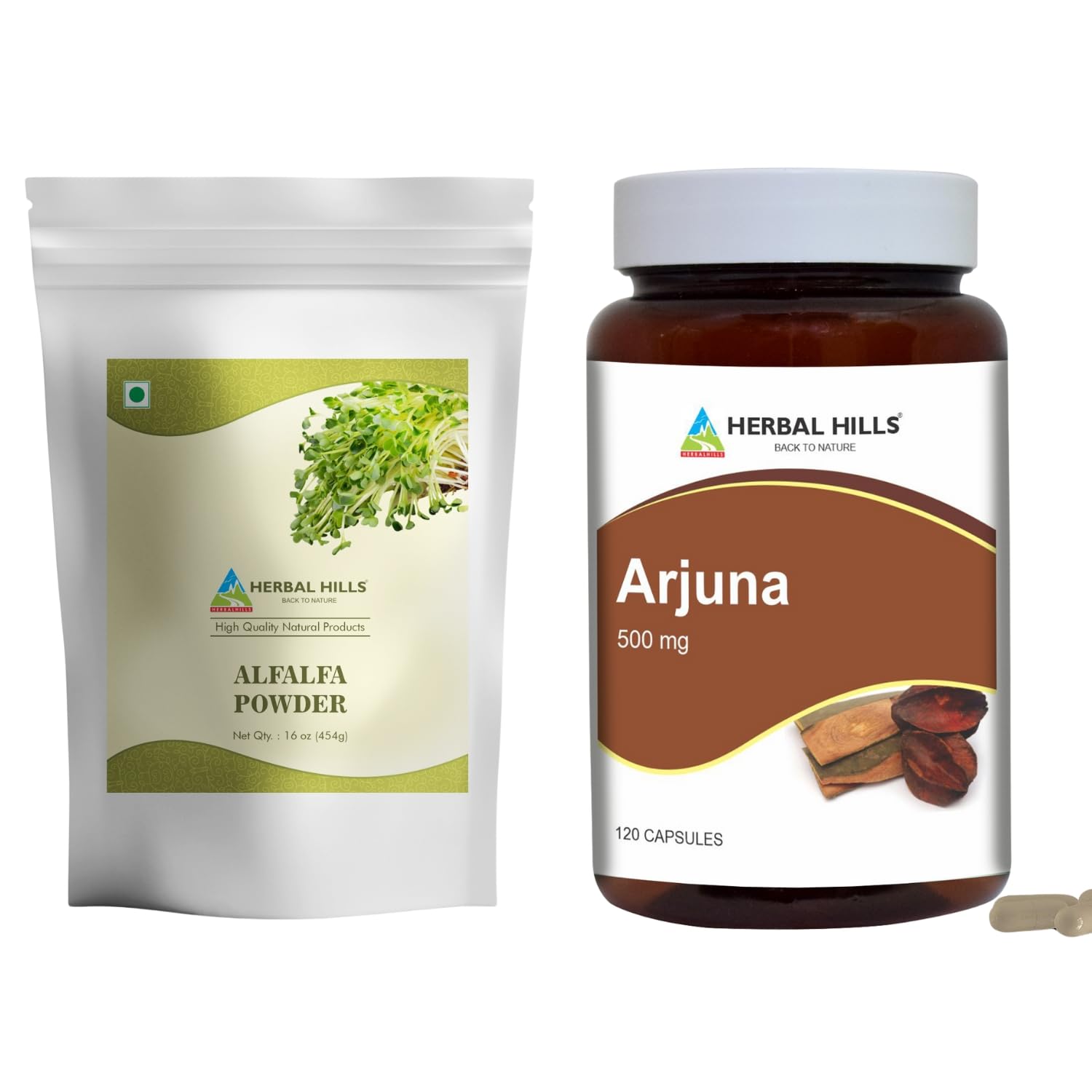 HERBAL HILLS Alfalfa Leaf Powder and Arjuna Capsules Terminalia Pack of 2 Combo