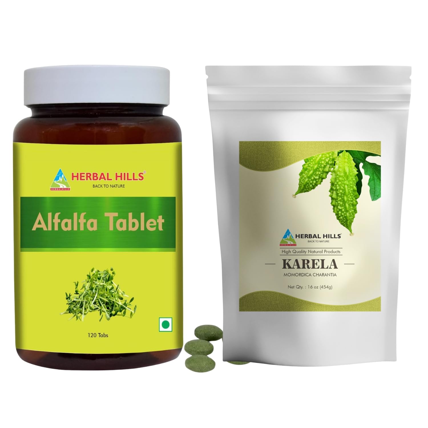 HERBAL HILLS Alfalfa Tablets and Karela Powder Pack of 2 Combo