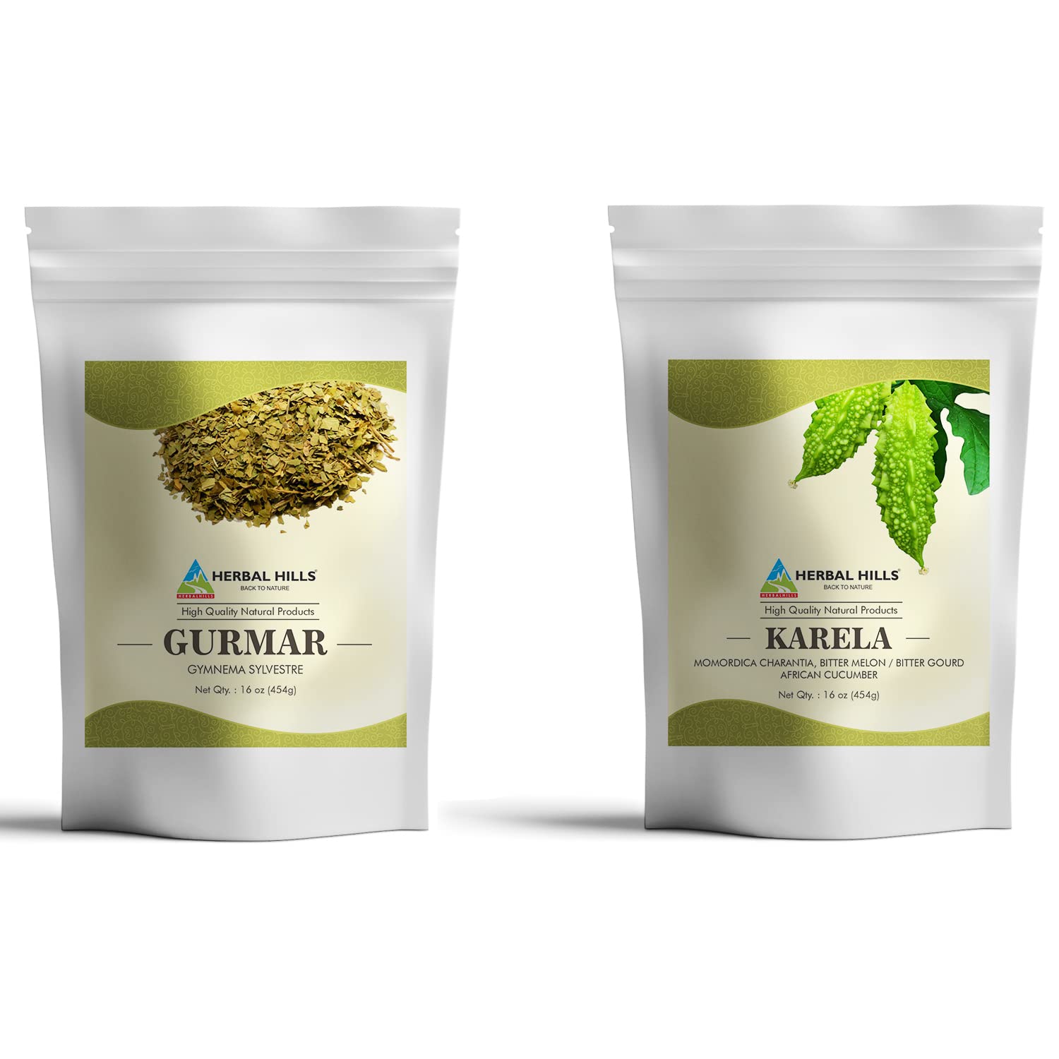 HERBAL HILLS Gurmar Powder & Bitter Melon Powder | Pack of 2 (16 oz Each) | Best for Healthy Life Style