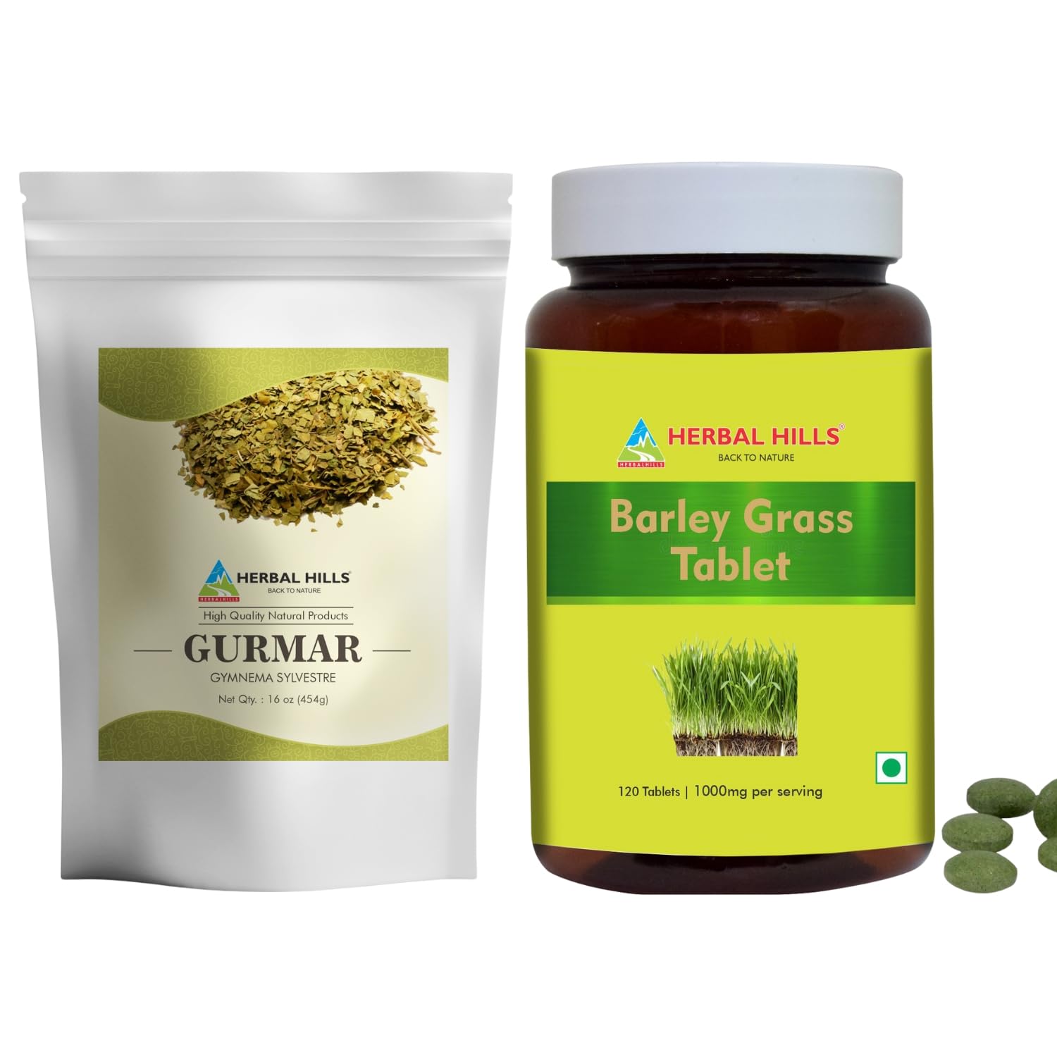 HERBAL HILLS Gurmar Tea Powder and Barley Grass Tablets Pack of 2 Combo