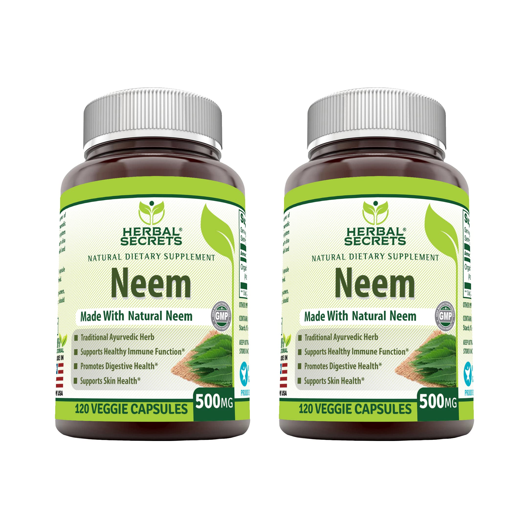 Herbal Secrets Neem Supplement (Non-GMO) Promotes Blood Purification Promotes Healthy Immunity and Promotes Health Skin* (500mg Veggie Capsules 120 Count (2 Pack)) 500mg Veggie Capsules 1 Count (Pack of 1)