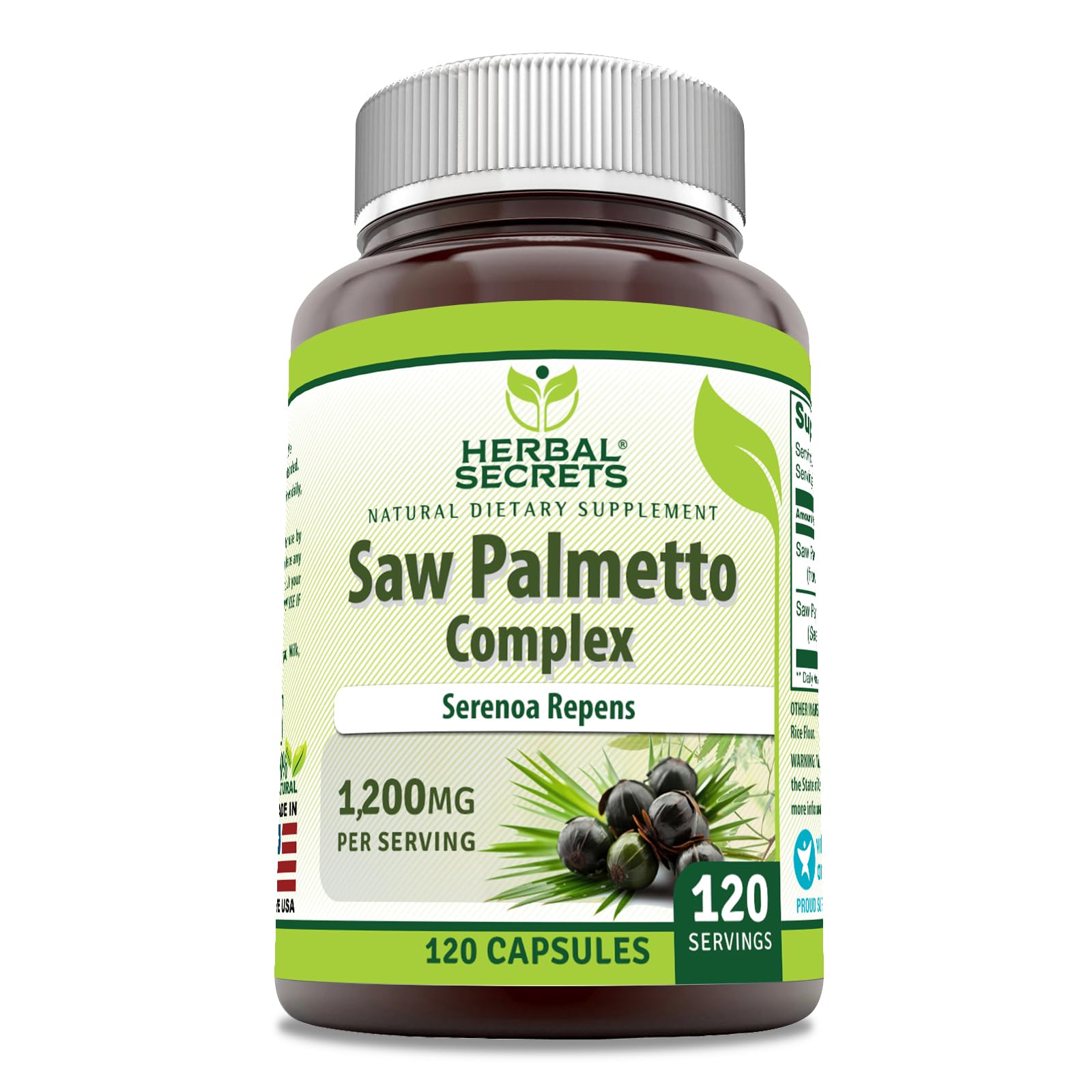 Herbal Secrets Saw Palmetto Complex Supplement | 1200 Mg | 120 Capsules | Non-GMO | Gluten Free | Made in USA