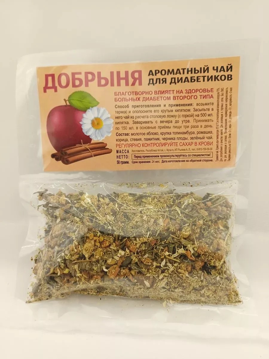 Dobrynya is a unique tea for diabetics. This wonderful product will help any diabetic feel wonderful. This tea contains ingredients such as chamomile and cinnamon, which have beneficial effects on the body. Dobrynya infusion will delight you with its pleasant aroma and delicate flavor, much needed by those who monitor their health.