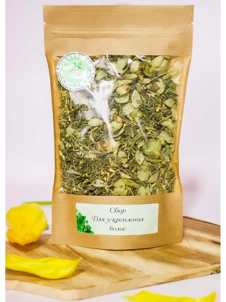 Hair strengthening mixture. Indications: seborrhea and baldness, strengthening and rapid hair growth, and premature graying. Directions: Add 2 tablespoons of the mixture to a cup of boiling water, boil for 5 minutes, and let steep for 1 hour. Strain and massage into the hair roots. Contraindications: Individual intolerance to any of the ingredients, pregnancy. Store in a dry, dark place at room temperature.