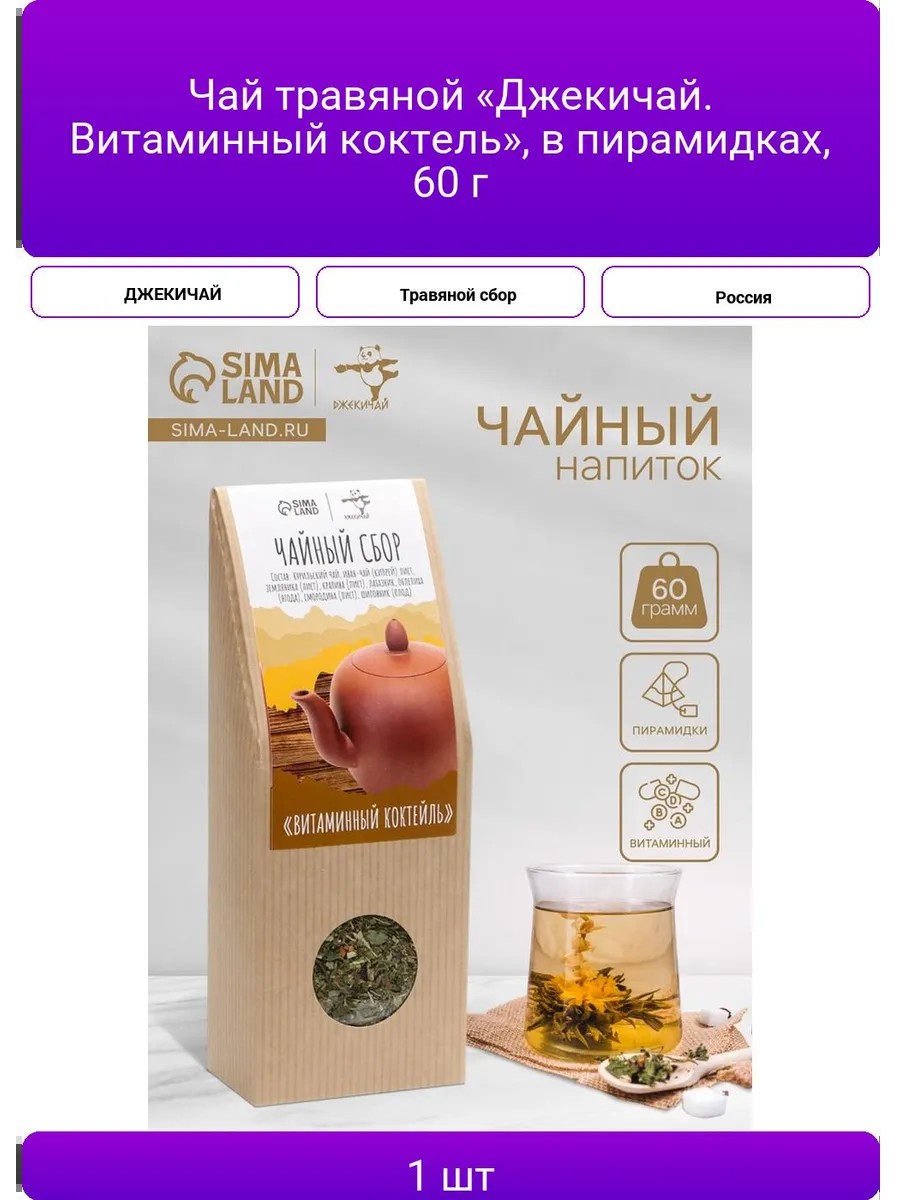 | Комплектация | Чай травяной «Джекичай. Витаминный коктель», в пирамидках, 60 г |