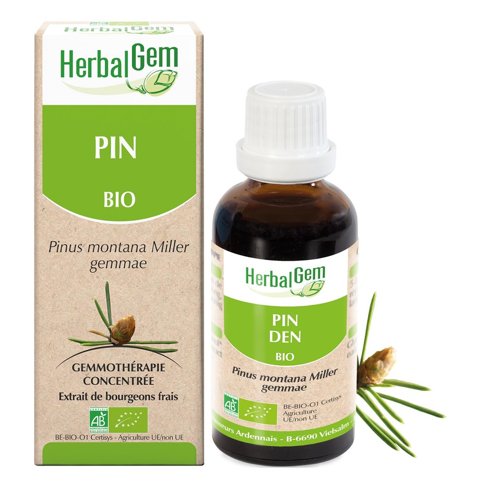 For more than 30 years, HerbalGem has been the benchmark brand for natural solutions based on 100 organic fresh bud macerates. Hand-picked from the brand's organic crops, the buds are rich in powers whose use has given rise to a discipline called gemmotherapy. HerbalGem's mother macerates are suitable for the whole family, from the youngest to the oldest, and help to maintain good health on a daily basis. The vast HerbalGem gemmotherapy range includes more than 60 concentrated mother macerates of certified ORGANIC buds. Each extract is prepared only with fresh plants, carefully selected from the most active species. No dilution takes place after harvest and maceration. Each allows you to benefit from all the properties of a single bud to benefit from a concentrate of unique active ingredients. Containing only a trace dose of alcohol, HerbalGem macerates can be used safely by children and pregnant women. INGREDIENTS Pinus Montana gemmae - Mountain pine buds. ORGANIC - Ingredient from organic farming (Certisys BE-BIO-01 control)HERBALGEM, CONCENTRATED GEMMOTHERAPY: Creator of concentrated gemmotherapy, Herbalgem has been an expert for 30 years in the development of food supplements based on buds and plant extracts. DIRECTIONS FOR USE AND DOSAGE: Take 5 to 15 drops of concentrated mother macerate every day, between meals, directly under the tongue. Keep it in your mouth for a few seconds before swallowing. CERTIFIED ORGANIC: HerbalGem mother macerates are prepared exclusively with buds harvested in forests and from organic farming. They benefit from the ORGANIC CERTISYS-BE-BIO-01 certification. THE BENEFITS OF PINE: Rich in remineralizing properties, the mountain pine bud (Pinus Montana Gemmae) has a beneficial effect on bone cells. HERBALGEM PINE MACERATE: Organic pine mother macerate is obtained from fresh, hand-picked buds, chosen to offer you the properties of the embryonic tissues of the growing tree. Depuis plus de 30 ans, HerbalGem est la marque de référence des solutions naturels à base de macérats de bourgeons frais 100 biologiques. Cueillis à la main au sein des cultures bio de la marque, les bourgeons sont riches de pouvoirs dont l'utilisation a donné naissance à une discipline nommée gemmothérapie. Les macérats-mères de bougerons HerbalGem conviennent à toute la famille, des plus petits aux plus grands, et contribuent à garder une bonne santé au quotidien. La vaste gamme de gemmothérapie HerbalGem comprend plus de 60 macérats-mères concentrés de bourgeons certifiés BIO. Chaque extrait est préparé uniquement avec des plantes fraîches, minutieusement sélectionnées parmi les espèces les plus actives. Aucune dilution n'a lieu après récolte et macération. Chacun vous permet de bénéficier de toutes les propriétés d'un seul bourgeon pour profiter d'un concentré d'actifs unique. Ne contenant qu'une dose infime d'alcool, les macérats HerbalGem peuvent être utilisés en toute sécurité par les enfants et les femmes enceintes. INGRÉDIENTS Pinus Montana gemmae - Bourgeons de pin des montagnes. BIO - Ingrédient issu de l'agriculture biologique (contrôle Certisys BE-BIO-01)HERBALGEM, LA GEMMOTHERAPIE CONCENTRÉE : Créateur de la gemmothérapie concentrée, Herbalgem est expert depuis 30 ans dans l'élaboration de compléments alimentaires à base de bourgeons et extraits de plantes. CONSEILS D'UTILISATION ET POSOLOGIE : Prenez 5 à 15 gouttes de macérat-mère concentré chaque jour, en dehors des repas, directement sous la langue. Gardez-le en bouche quelques secondes avant de l'avaler. CERTIFIÉ BIO : Les macérats-mères HerbalGem sont préparés exclusivement avec des bourgeons récoltés dans les forêts et issus de l'agriculture biologique. Ils bénéficient de la certification BIO CERTISYS-BE-BIO-01. LES BIENFAITS DU PIN : Riche en propriétés reminéralisantes, le bourgeon de pin des montagnes (Pinus Montana Gemmae) a une action bienfaisante sur les cellules osseuses. MACERAT DE PIN HERBALGEM : Le macérat-mère de pin bio est obtenu à partir de bourgeons frais cueillis à la main, choisis pour vous offrir les propriétés des tissus embryonnaires de l'arbre en pleine croissance.