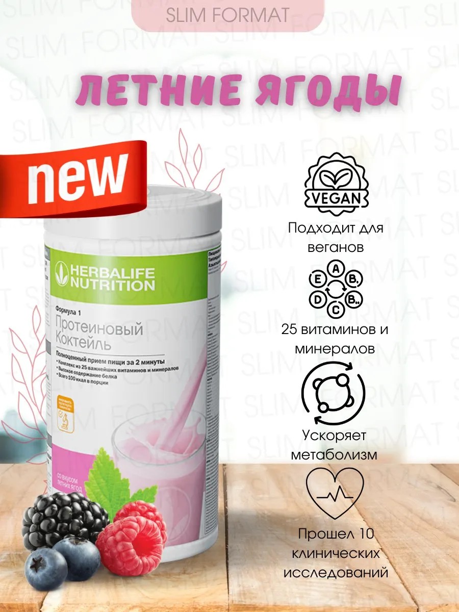 Начать утро со сбалансированного завтрака! Протеиновый коктейль Формула 1 со вкусом Летние ягоды станет его отличной основой. Ведь в одной порции содержится 18 г белка, пищевые волокна и комплекс из более чем 20 витаминов и минералов. А нежный вкус летних ягод зарядит позитивом в начале солнечного дня. Всего 2 минуты и коктейль готов! Снижение веса должно быть лёгким и приятным! Коктейль для похудения Herbalife это качественный протеин (изолят соевого белка) c комплексом витаминов. Протеиновый коктейль Формула 1 - продукт бестселлер Herbalife по всему миру. Видимый результат достигается уже через 2 недели. Продукция разработана в собственном научном центре Herbalife и выпускается на производстве по международным стандартам качества GMP. Без ГМО