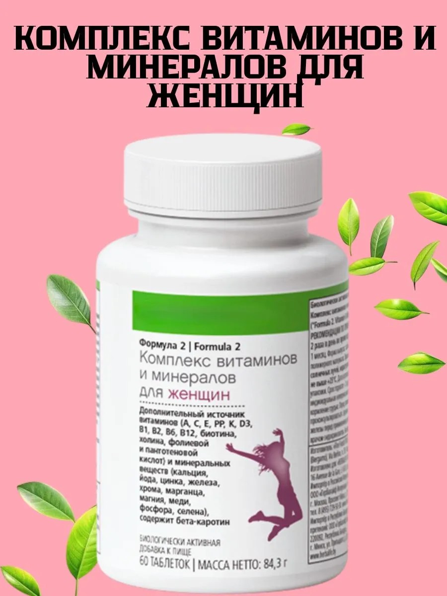 Комплекс витаминов и минералов для женщин herbalif. Витамины для женщин herbal - это особые вещества, необходимые организму для полноценного функционирования. Они не обладают пищевой ценностью, но выполняют важнейшие функции – регулируют обменные процессы, катализируют биохимические реакции, помогают в усвоении многих минеральных компонентов. В состав комплекса мультивитаминов для Женщин от Гербалай Формула 2 входят витамины: А, С, Е, РР, D3, К, B1, B2, B6, B12, холин, биотин, пантотеновая и фолиевая кислоты, а также минералы: цинк, кальций, железо, йод, марганец, хром, медь, магний, селен, фосфор, бета-каротин. Женские витамины в таблетках - это спортивные поливитамины для восполнения основных важных микро и макро- элементов в организме. Какие витамины в таблетке? - все необходимые микроэлементы, мульти витамины для улучшения здоровья, общего самочувствия, повышения умственных и физических возможностей, улучшения иммунитета. Сжигание жира, укрепление сердца и сосудов, повышение выносливости организма, похудение, а также укрепление кожи, волос и ногтей - все это доступно с витаминами Гербалай. Витамин А - поддержка для органов зрения и костной ткани, Бета-каротин - водорастворимый витамин, антиоксидант; Витамин В12 - водорастворимый витамин (Необходим для здоровья кожи и нервной системы, Играет важную роль в метаболизме белков); Витамин Д - улучшает усвоение калия и фосфора, укрепляет ткани костей и зубов; Витамин Е - антиоксидант; необходим для нормального функционирования сердца, мышц, нервной системы, системы кровообращения; Витамин С - антиоксидант, поддерживает здоровье кожи; Тиамин - участвует в процессе синтеза энергии; Рибофламин - улучшает зрение, участвует в процессе превращения белков, жиров и углеводов в энергию; Ниацин - укрепляет нервную систему, улучшает пищеварение, высвобождает энергию в клетках; Витамин В6 - важная роль в метаболизме белков, необходим для здоровья кожи и иммунной, нервной системы; Фолиевая кислота - способствует росту и воспроизводству клеток; особенно важная для женщин детородного возраста. Помогает сохранить кожу гладкой и здоровой. Витаминки станут отличным подарком на 8 марта, день рождение маме, бабушке, тете, подруге, тренеру, коллеге, соседке. БАД. Не является лекарственным средством. Рекомендации по применению: Взрослым по 1 таблетке 2 раза в день во время еды, суточная норма рассчитывается исходя из индивидуальных особенностей. Сочетается с Протеиновым Коктейлем для похудения от Гербала, Протеиновая Смесь (белок/протеин) сывороточный и соевый средство для похудения, здоровое питание продукты, похудение для женщин Жиросжигатель, детокс очищение организма, мощное средство для похудения. в качестве перекуса хорошо подойдут Протеиновые лимонные батончики 14 шт herbalif.