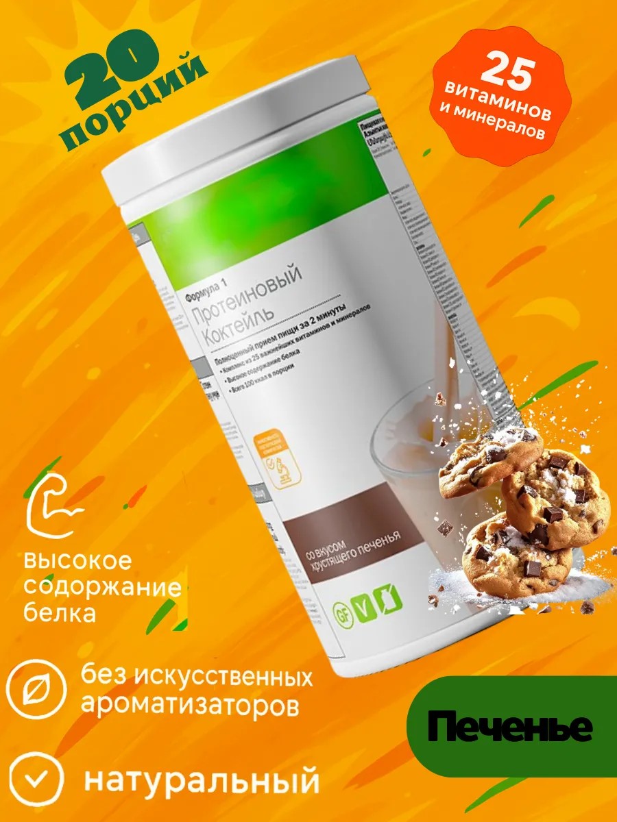 Протеиновый коктейль Herbalife «Формула 1» со вкусом Хрустящего печенья — оригинальная продукция Гербалайф для похудения и поддержания формы. Это белковый коктейль на основе изолята соевого белка, который идеально подходит для веганов и тех, кто стремится контролировать вес, снижать аппетит или набирать мышечную массу. В каждой порции содержится 11 г растительного белка (или 17 г при приготовлении с 250 мл обезжиренного молока), высокое содержание пищевых волокон и более 20 витаминов и минералов, включая A, C, D, E, B6 и B12. Коктейль не содержит сахара, ГМО и искусственных добавок, а его калорийность — всего 92 ккал в сухом виде или 217 ккал с молоком. Протеиновый коктейль Herbalife легко готовится — достаточно размешать 2 столовые ложки смеси в молоке или растительном напитке. Это идеальный продукт для тех, кто ищет эффективный коктейль для похудения, спортивного питания или здорового замена пищи. Подходит как для женщин, так и для мужчин. Упаковка содержит 550 г (21 порция), удобно брать с собой. Herbalife коктейль для похудения — это питание на каждый день, способствующее нормализации обмена веществ, поддержке иммунной системы, мышц, костей и зубов. Отлично вписывается в рацион питания для похудения на неделю, позволяет заменять до двух приёмов пищи в день. Подходит для тех, кто ищет: протеиновый коктейль, белковый коктейль для похудения, коктейль без сахара, изолят соевого белка, веганский протеин, смесь для коктейлей, белок Herbalife формула 3, продукция Гербалайф, белковый коктейль спортивное питание и косметика, коктейль для похудения эффективный, herbalife коктейль дыня, herbalife набор для похудения, протеин коктейль, коллаген Herbalife.