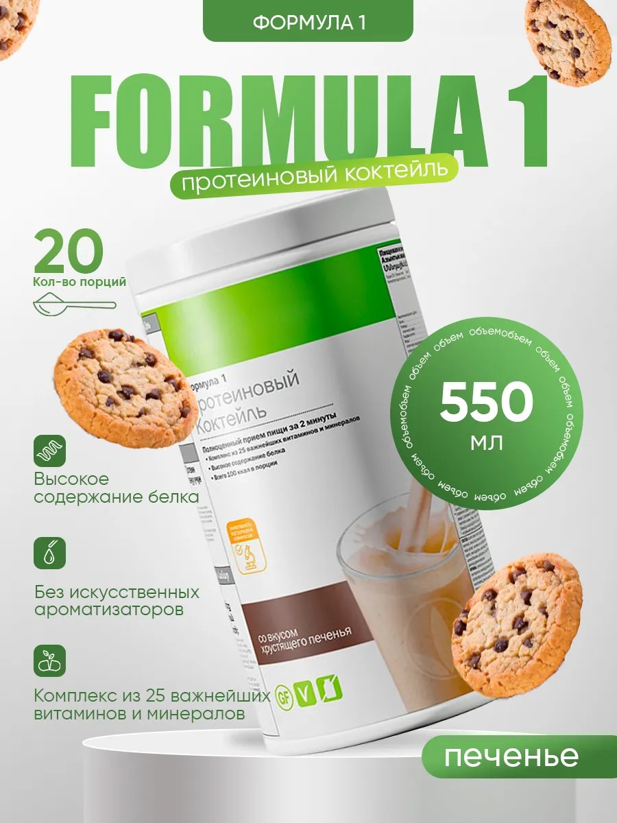 СО ВКУСОМ Хрустящего Печенья Herbalife Протеиновый коктейль Формула 1 550г.Сертифицированный оригинал. Сухая смесь для приготовления протеинового коктейля.Это сбалансированная еда в стакане, которой можно заменить полноценный прием пищи, при этом обеспечив организм необходимым набором питательных веществ.В составе высококачественный соевый белок, пищевые волокна и комплекс из более чем 20 важнейших витаминов и минералов, включая витаминыПротеиновый коктейль Формула 1 - продукт бестселлер Herbalife по всему миру.Видимый результат достигается уже через 2 недели**. Продукция разработана в собственном научном центре Herbalife Nutrition и выпускается на производстве по международным стандартам качества GMP. Без ГМО.