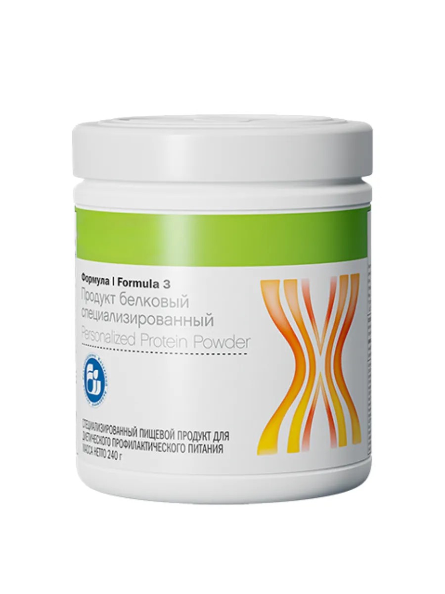 Формула 3. Продукт белковый специализированный Протеиновая смесь с соевым и сывороточным белком для удовлетворения индивидуальных потребностей организма в белке. Не содержит ГМО.