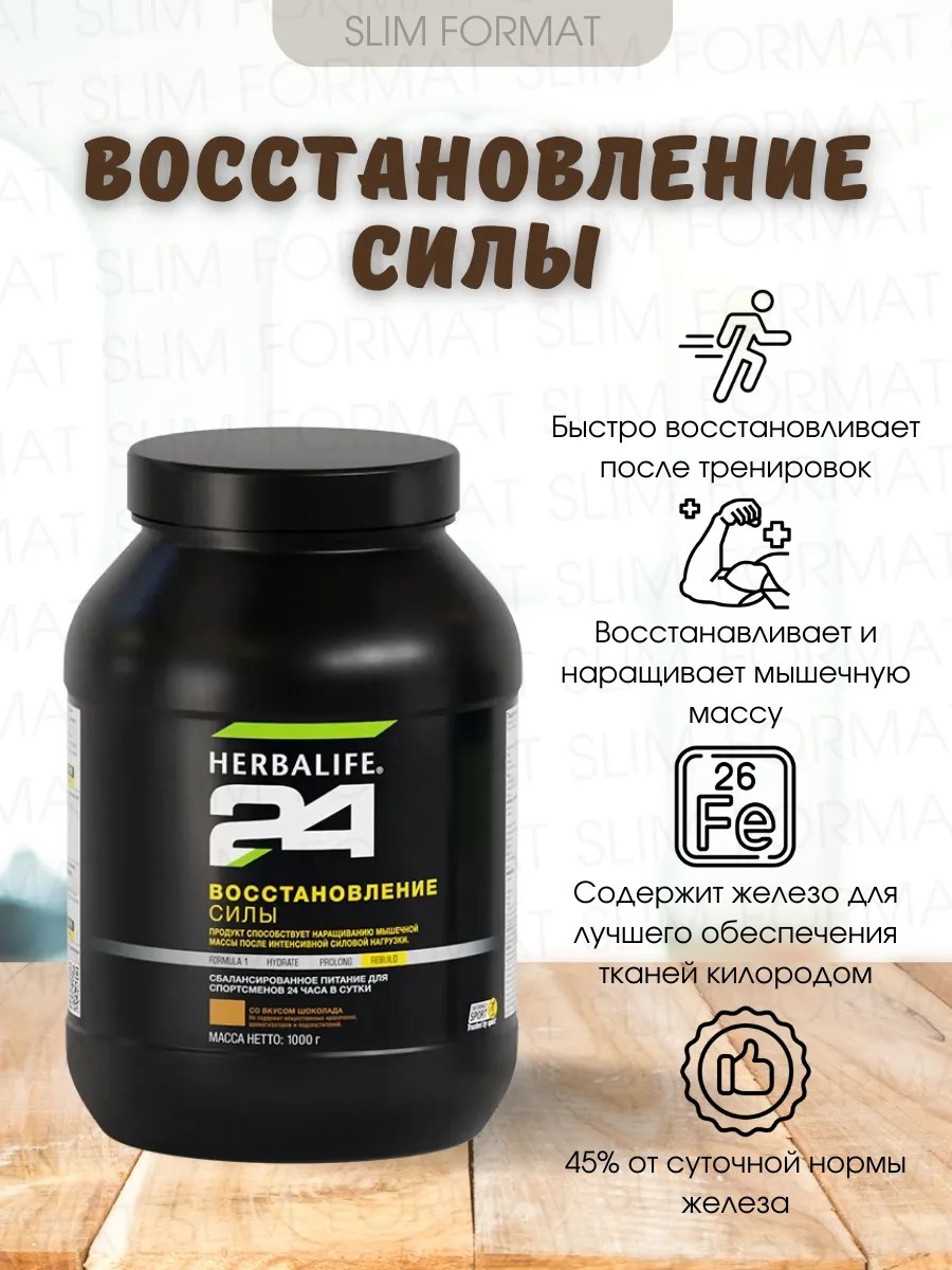 A complex of rapidly digestible whey protein, slowly digestible casein, branched-chain amino acids, and L-glutamine stimulates active and prolonged muscle building. This product promotes muscle growth after intense strength training. It contains protein, which ensures accelerated recovery after strength training, and iron for improved tissue oxygenation. Herbalife 24 Recovery Shake for Sports, Chocolate Flavor, 1000g. This product promotes muscle growth after intense strength training. This specialized nutritional product with L-glutamine and amino acids, 24 Strength Recovery, is recommended for athletes during periods of intense training as a supplement to their main diet, in accordance with a program developed for these sports, under the supervision of a sports physician or sports nutrition specialist. The shake contains 18 g of carbohydrates, which provide energy and promote more complete protein utilization; it works better than a gainer. L-Glutamine supports immune function and promotes muscle recovery. Iron is essential for red blood cell production. Branched-chain amino acids support muscle growth. NSF Certified for Sport. Tested – Contains no banned substances. The verified manufacturing facility complies with GMP requirements.