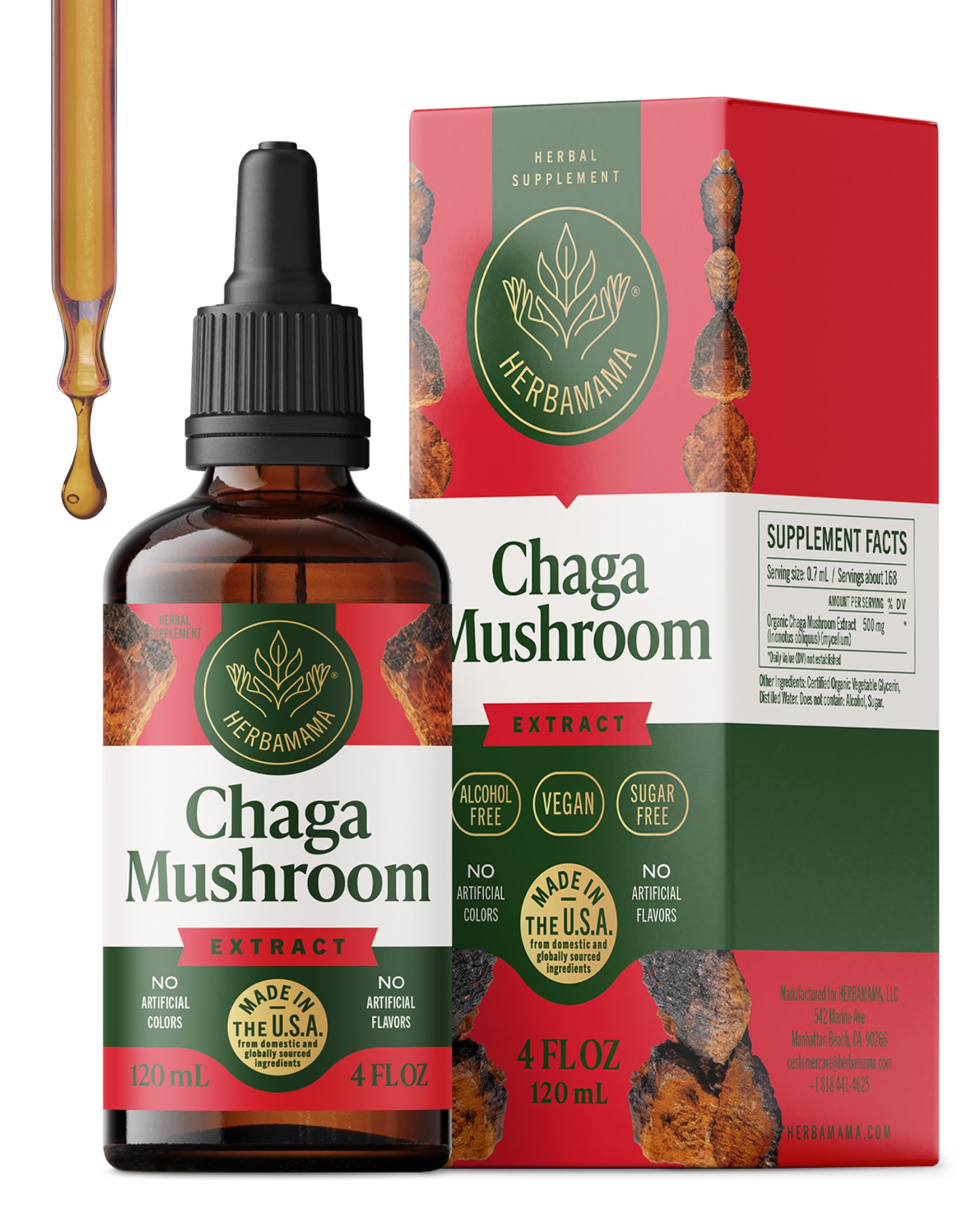 HERBAMAMA Chaga Mushroom Tincture - Vegan Immune Support & Defense with Chaga Mushroom Extract Drops - Non-GMO Alcohol & Sugar-Free Liquid Immunity Supplement 84-Day Supply 4 Fl Oz (Pack of 1)