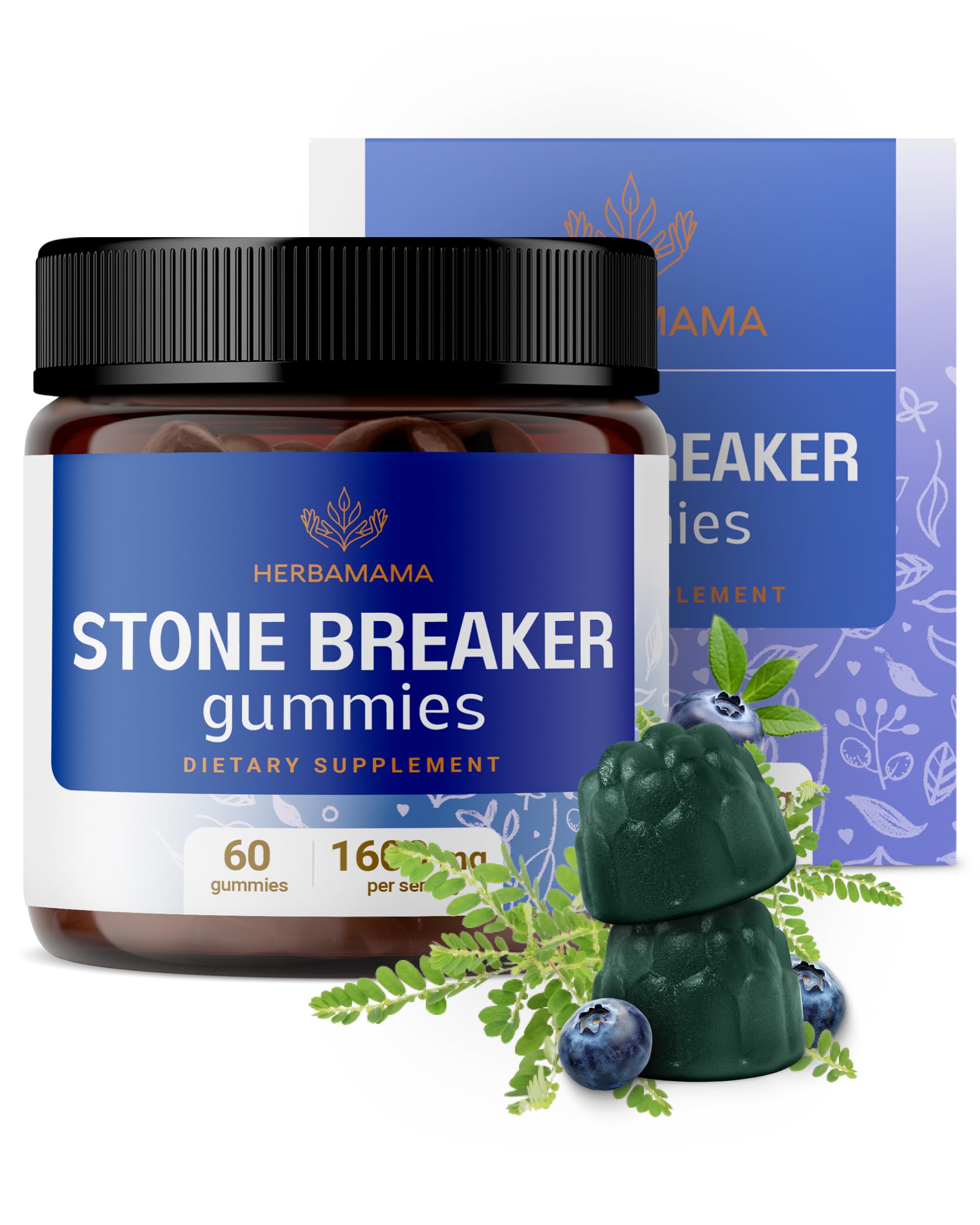 HERBAMAMA Chanca Piedra Stone Breaker Gummies - 1600mg Chanca Piedra for Urinary Tract Cleanse Detox - Vegan Non-GMO Kidney Support Supplement - 60 Pectin-Based Blueberry-Flavored Chews