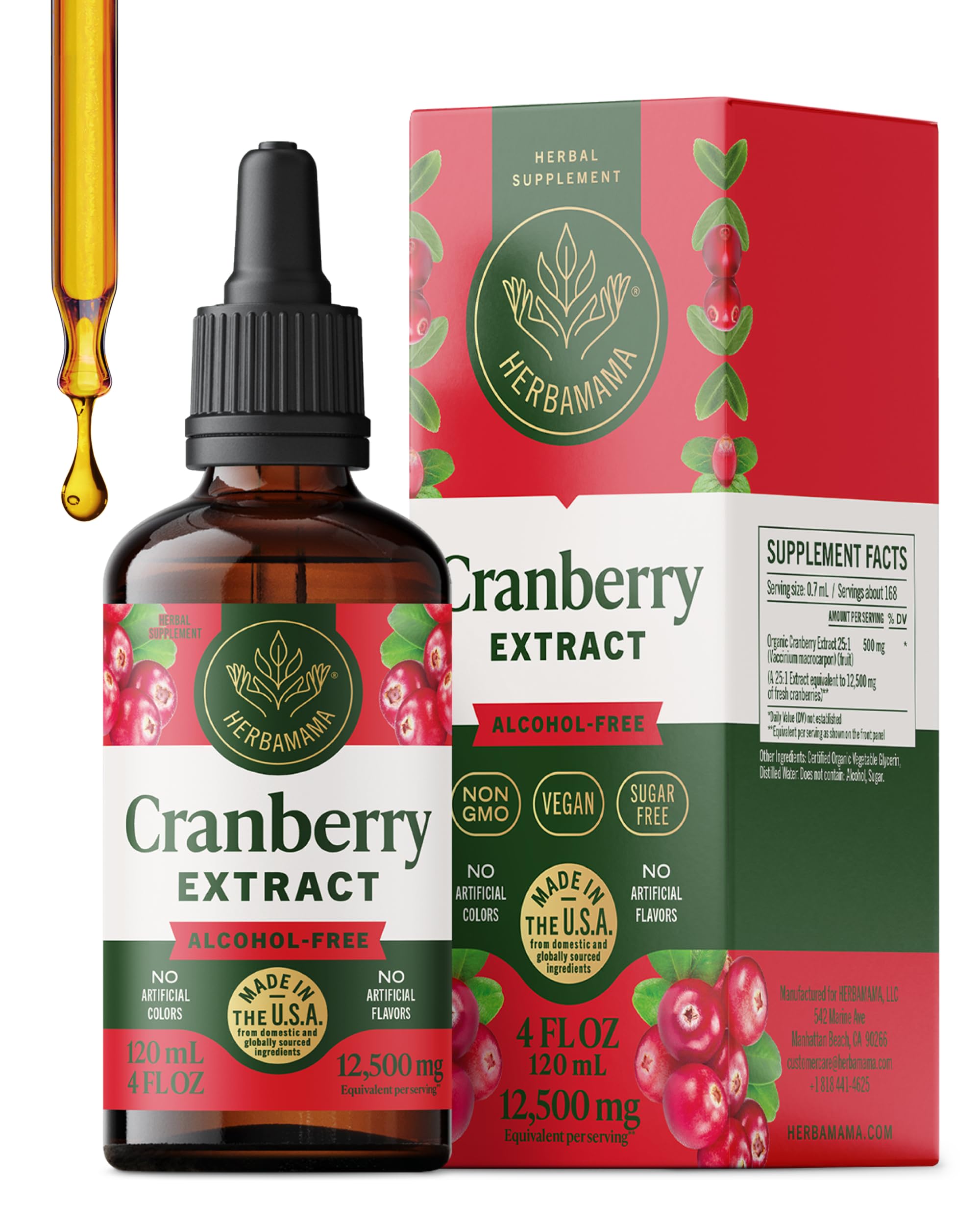 HERBAMAMA Cranberry Supplement Tincture - Vegan Urinary Tract Support for Men and Women with Cranberry Extract - Non-GMO Alcohol & Sugar-Free Kidney Support Supplement 84-Day Supply 4 Fl Oz (Pack of 1)