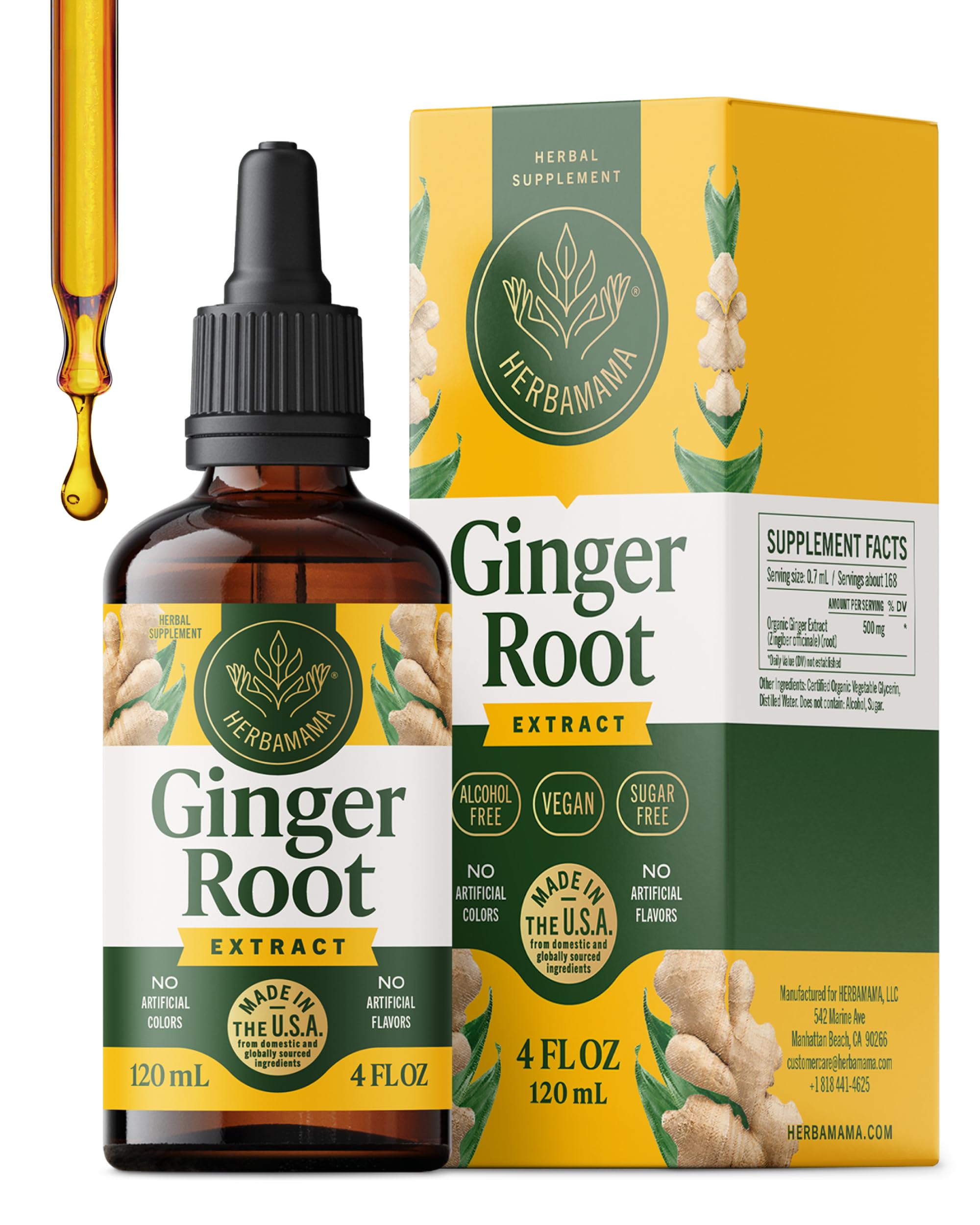 HERBAMAMA Ginger Drops - Vegan Digestive Support & Overall Well-Being with Ginger Root Extract Tincture - Non-GMO, Alcohol & Sugar-Free Liquid Antioxidant Supplement, 56-Day Supply 4 Fl Oz (Pack of 1)