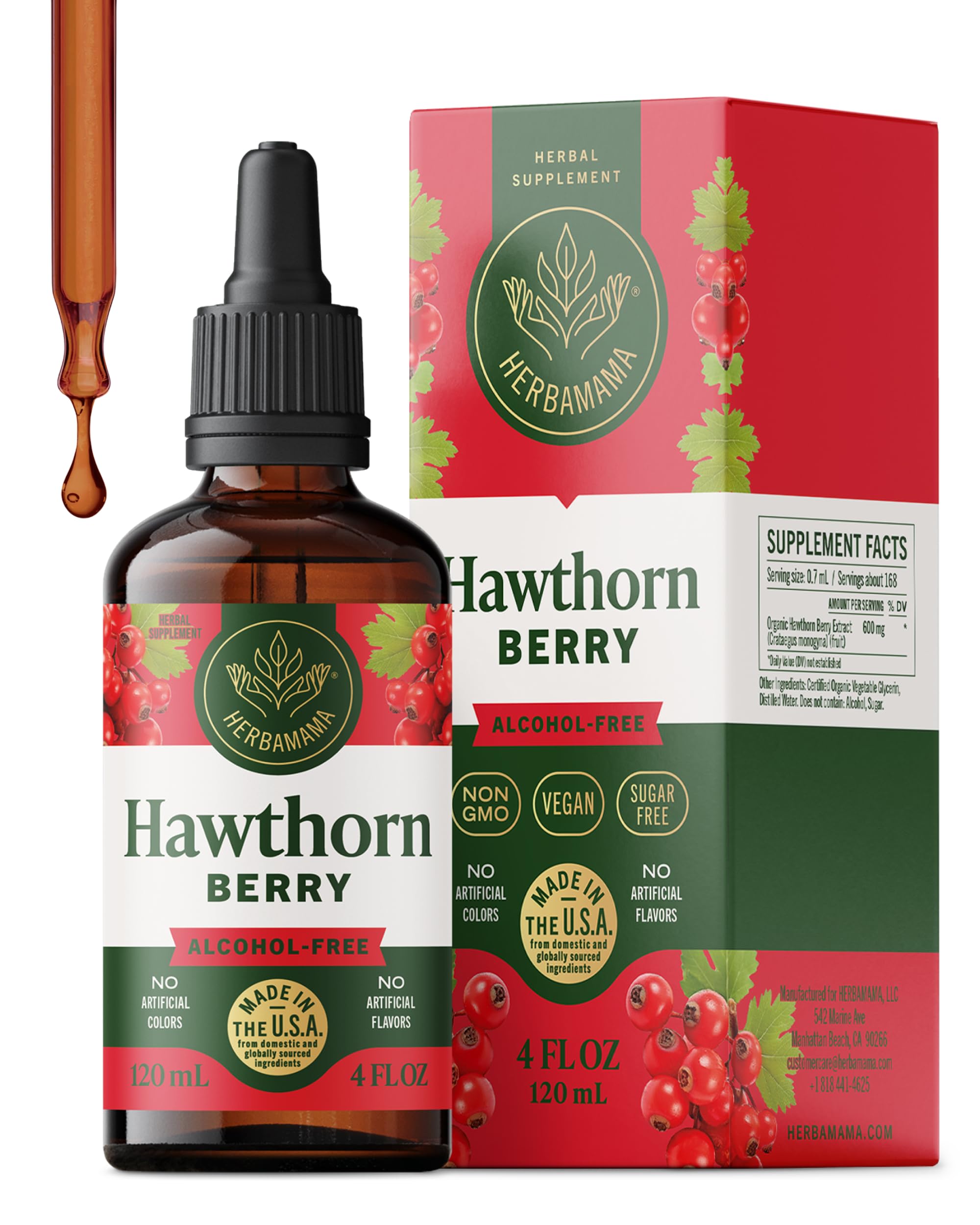 HERBAMAMA Hawthorn Berry Supplement Drops - Vegan Antioxidant & Overall Support with Hawthorn Tincture - Non-GMO Alcohol & Sugar-Free Liquid Fruit Extract 56-Day Supply 4 Fl Oz (Pack of 1)