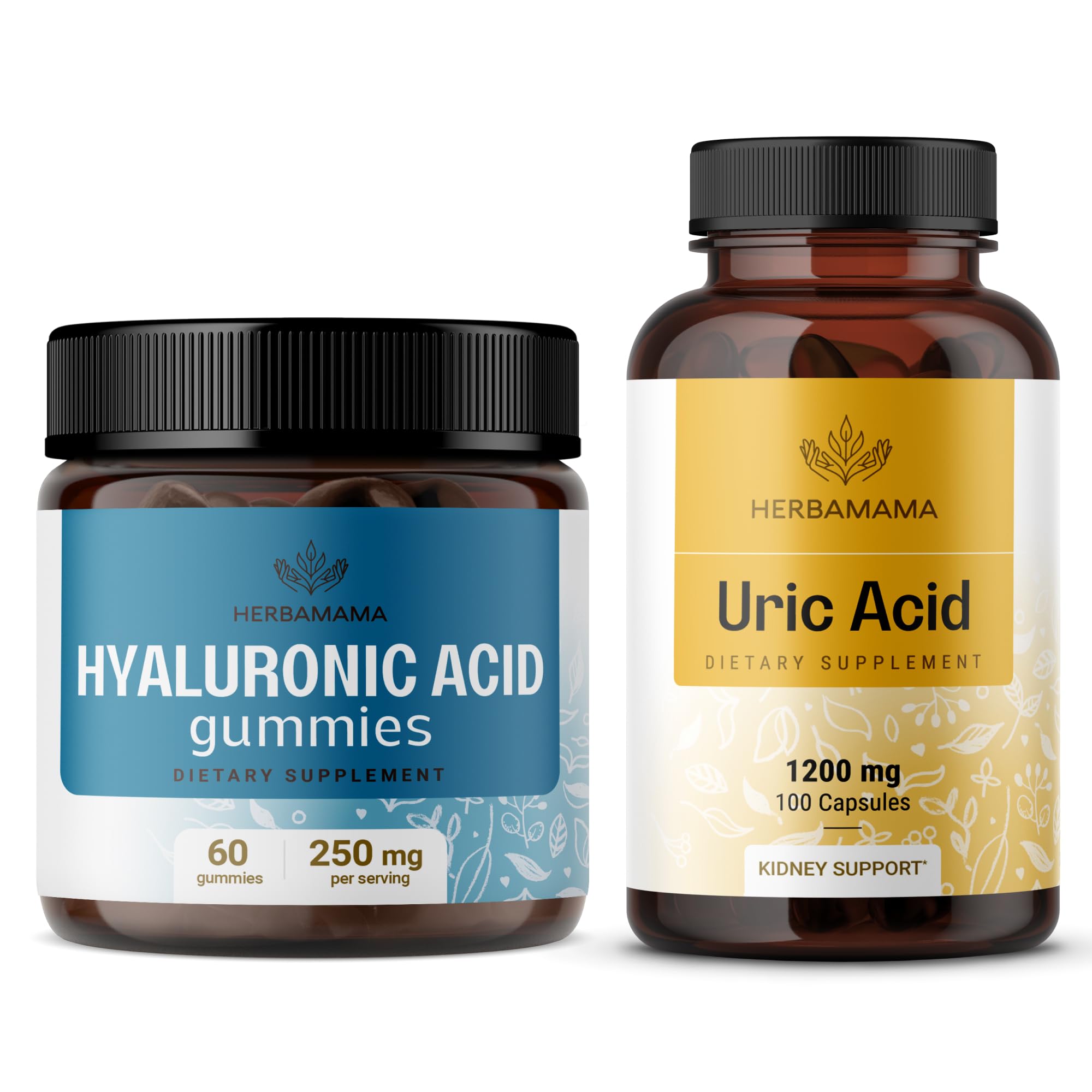 HERBAMAMA Hyaluronic Acid and Uric Acid Support Kit - Bundle of 250mg Hyaluronic Acid Gummies & 1200mg Uric Acid Support Capsules - Vegan Non-GMO - 2 Pack