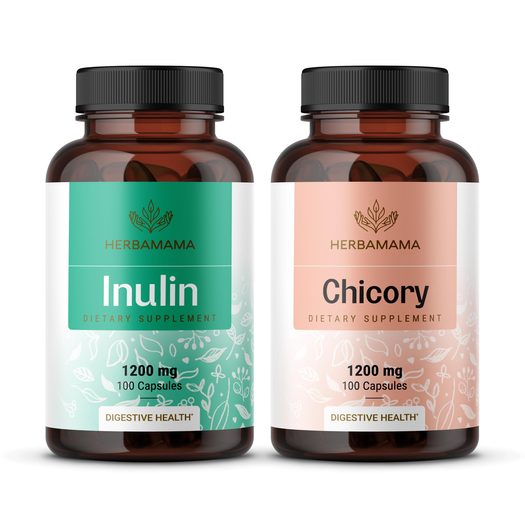 HERBAMAMA Inulin and Chicory Kit - Bundle of 1200 mg Inulin Fiber & 1200 mg Chicory Root Capsules - Vegan Non-GMO Gelatinl-Free - 2 Pack