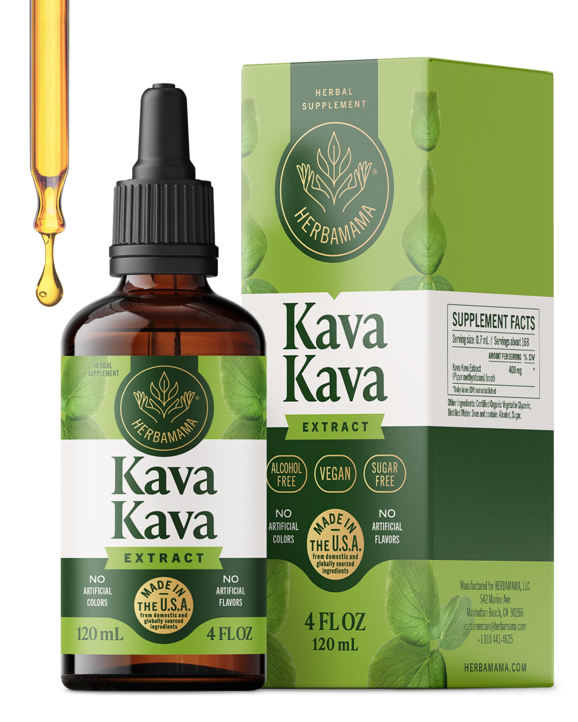 HERBAMAMA Kava Kava Tincture - Vegan Relaxation & Mood Support with Root Extract - Non-GMO, Alcohol & Sugar-Free Liquid Calming Supplement, 168-Day Supply 4 Fl Oz (Pack of 1)