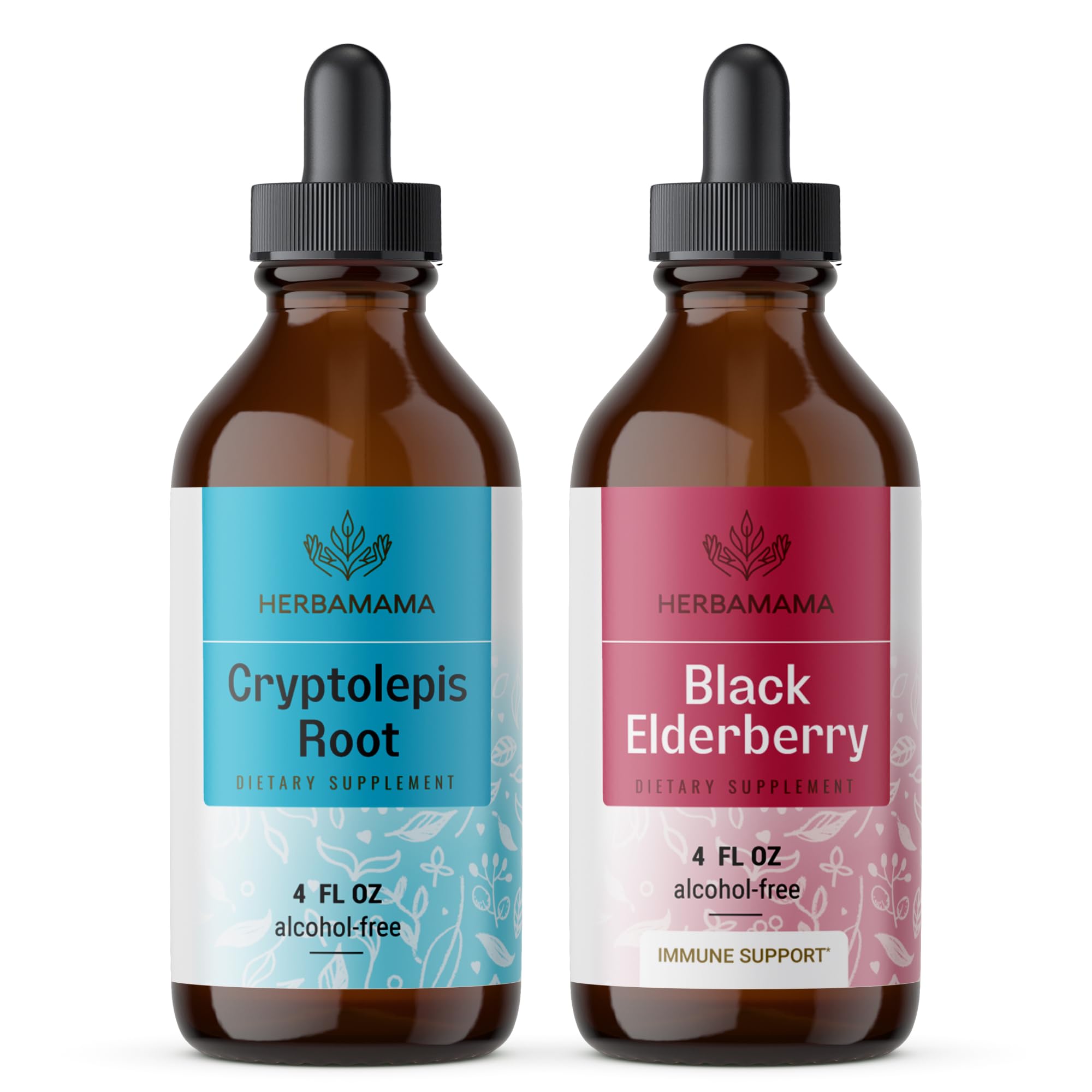 HERBAMAMA Liquid Drops Kit - Bundle of Cryptolepis Root and Black Elderberry Tincture 4 fl oz - Vegan Non-GMO Sugar & Alcohol-Free - 2 Pack