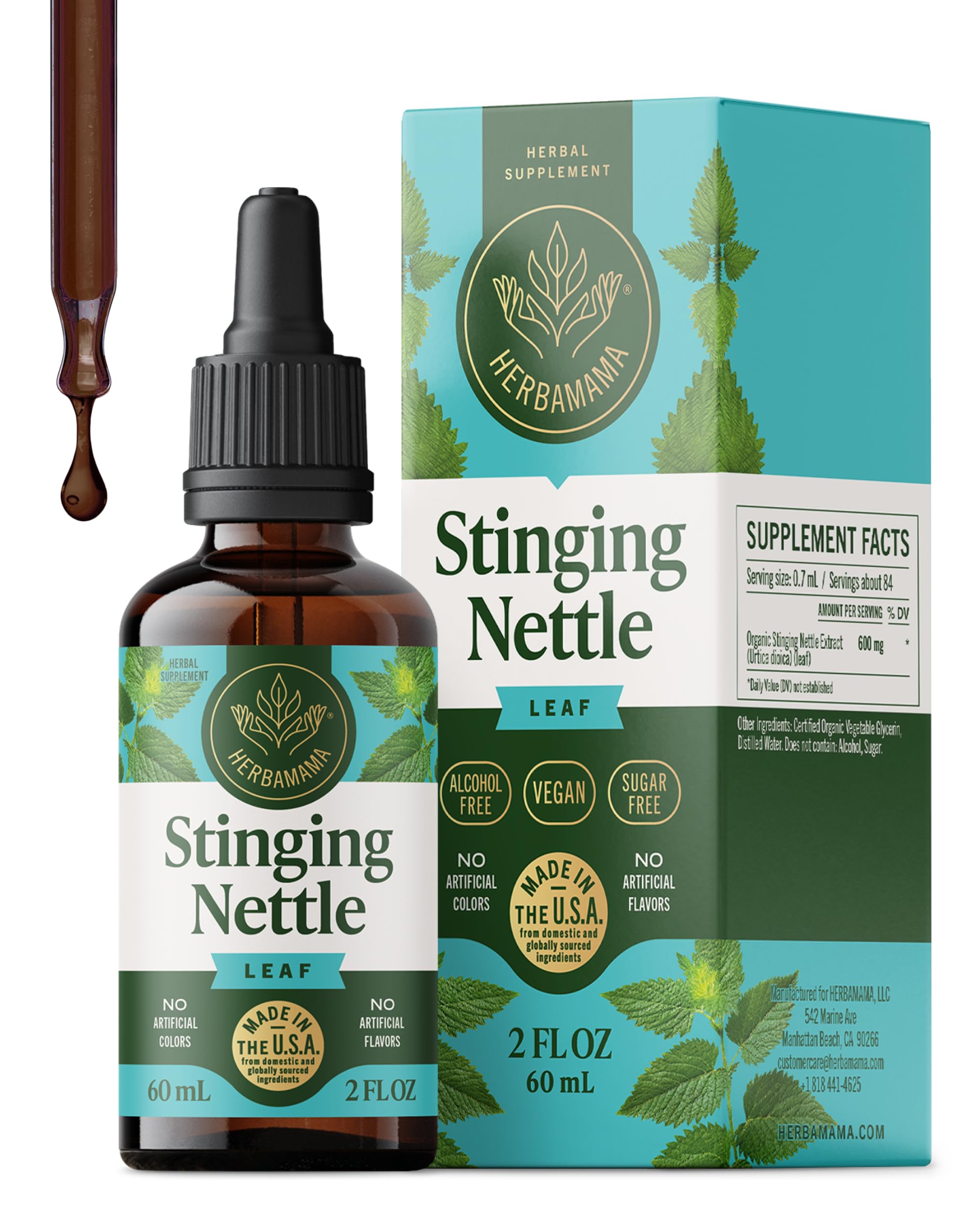 HERBAMAMA Stinging Nettle Tincture - Vegan Urinary Tract Support with Stinging Nettle Leaf Extract Drops - Non-GMO Alcohol & Sugar-Free Urtica Dioica Kidney Supplement 84-Day Supply 2 Fl Oz (Pack of 1)