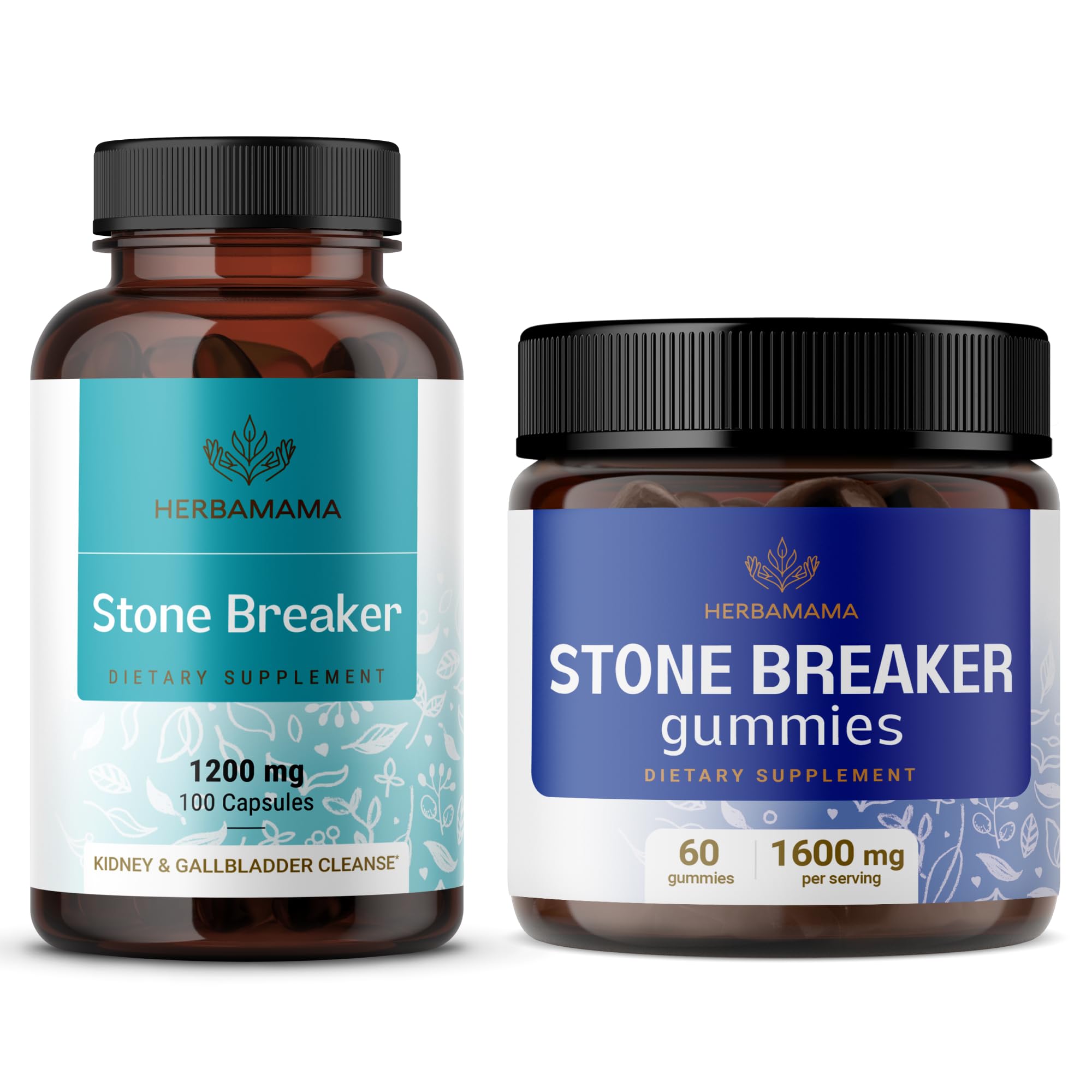 HERBAMAMA Stone Breaker Chanca Piedra Kit - Bundle of 1200 mg Stone Breaker Capsules & 1600 mg Chanca Piedra Gummies - Vegan Non-GMO Gelatin-Free - 2 Pack