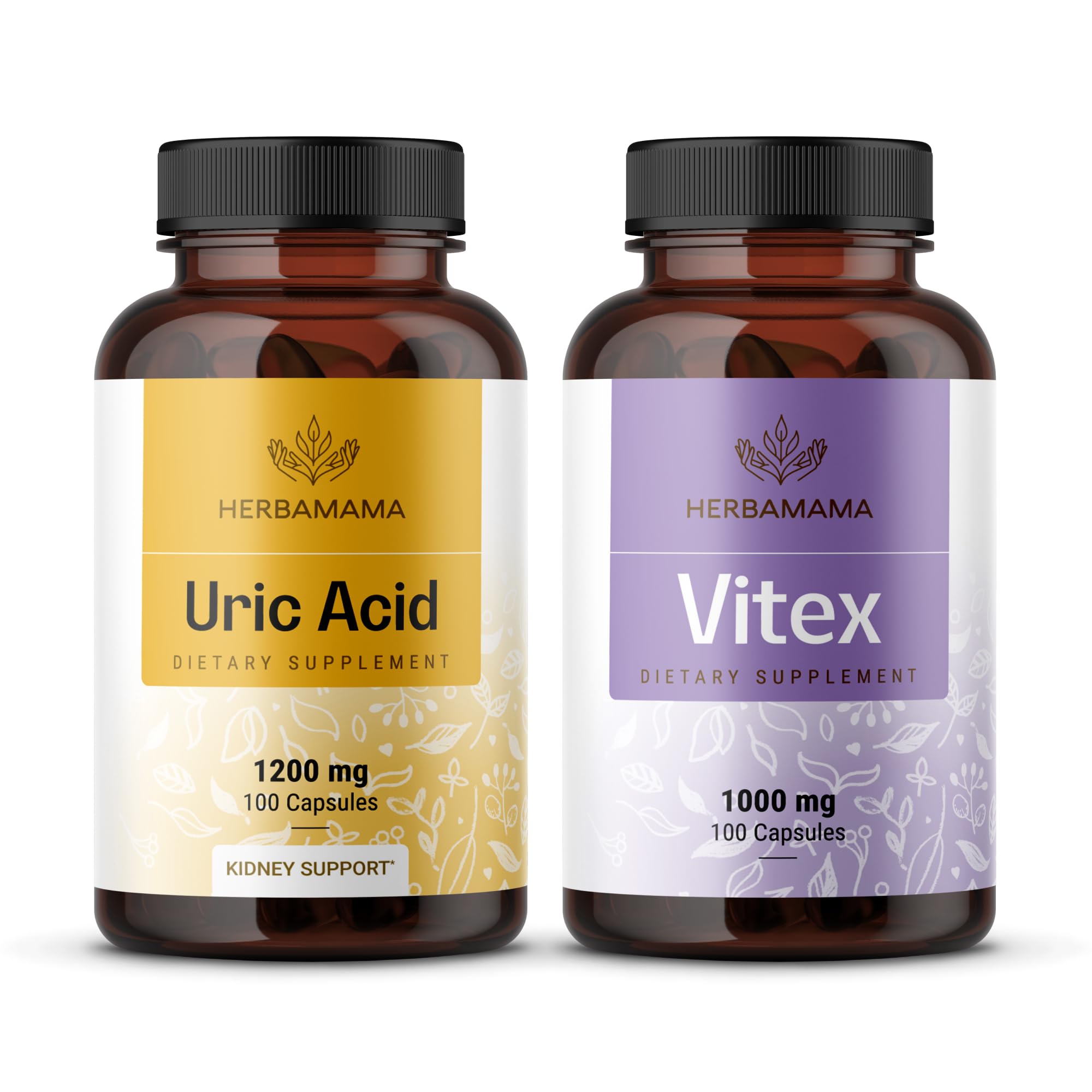 HERBAMAMA Uric Acid and Vitex Kit - Bundle of Uric Acid Complex & Vitex Chaste Tree Berry Capsules - Vegan Non GMO Gelatin-Free - 2 Pack