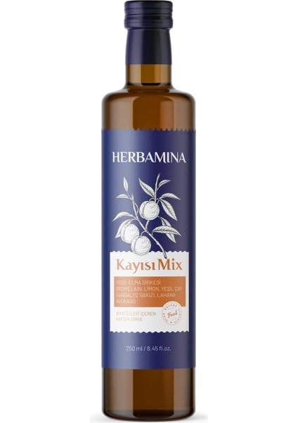 It combines natural acidity and refreshing taste with its green apple cider vinegar content. Thanks to the bromelain enzyme, it supports digestion and regulates the digestive system. - Adding lemon creates a delicious flavor profile by balancing sourness and sweetness. Sandalose gum is used as a natural sweetener, reducing the need for sugar and providing a healthy alternative. Cabbage is rich in vitamin C and fiber, supports digestive health and gives a feeling of fullness. Avocado contributes to your daily diet by increg its nutritional value with healthy fats and fiber.Kayisi Mix Sirke 250ml Ürün Açiklamasi Yesil elma sirkesi içerigi ile dogal asitligi ve ferahlatici tadi bir arada sunar. Bromelain enzimi sayesinde sindirimi destekler ve sindirim sistemini düzenler. - Limon eklenmesi, eksilik ile tatliligi dengeleyerek lezzetli bir tat profili olusturur. Sandaloz sakizi, dogal tatlandirici olarak kullanilarak seker ihtiyacini azaltir ve saglikli bir alternatif sunar. Lahana, C vitamini ve lif açisindan zengin olup, sindirim sagligini destekler ve tokluk hissi verir. Avokado, saglikli yaglar ve liflerle besin degerini artirarak günlük beslenmenize katkida bulunur.