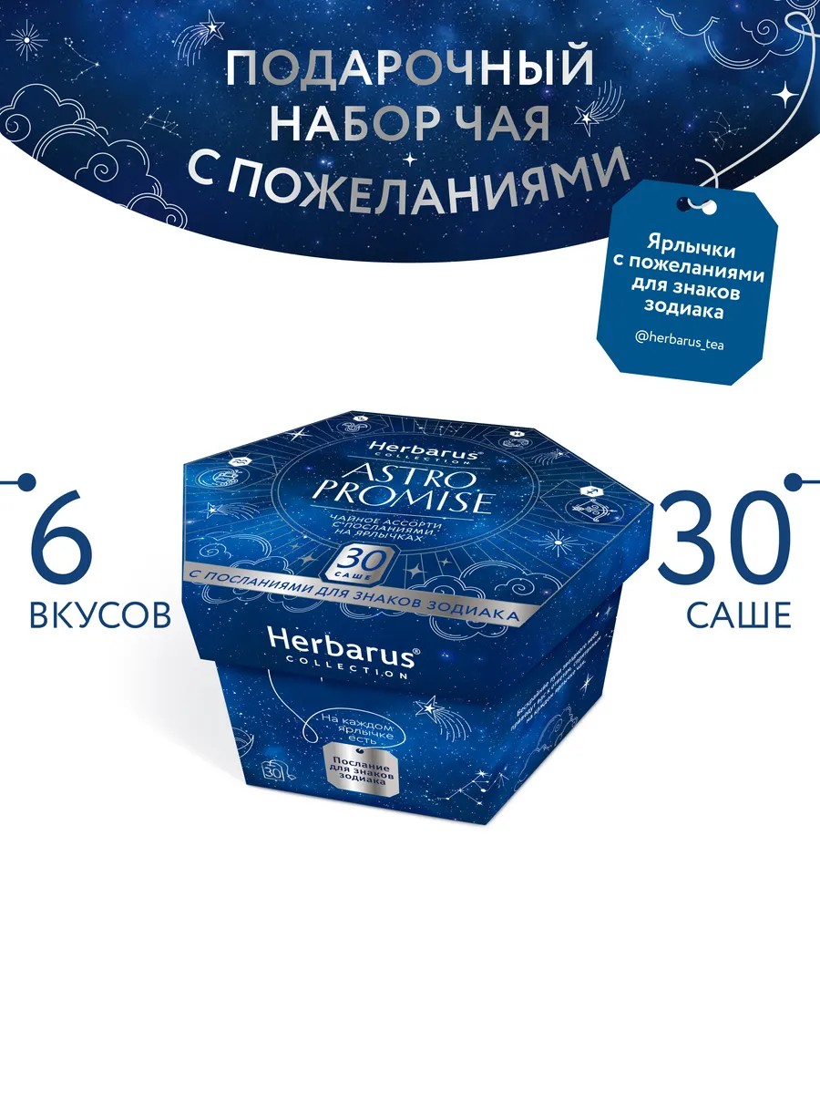 Подарочный набор популярных вкусов в одной упаковке Чайное Ассорти Herbarus, коллекция Astro Promise - позволит познакомиться с неповторимыми купажами!