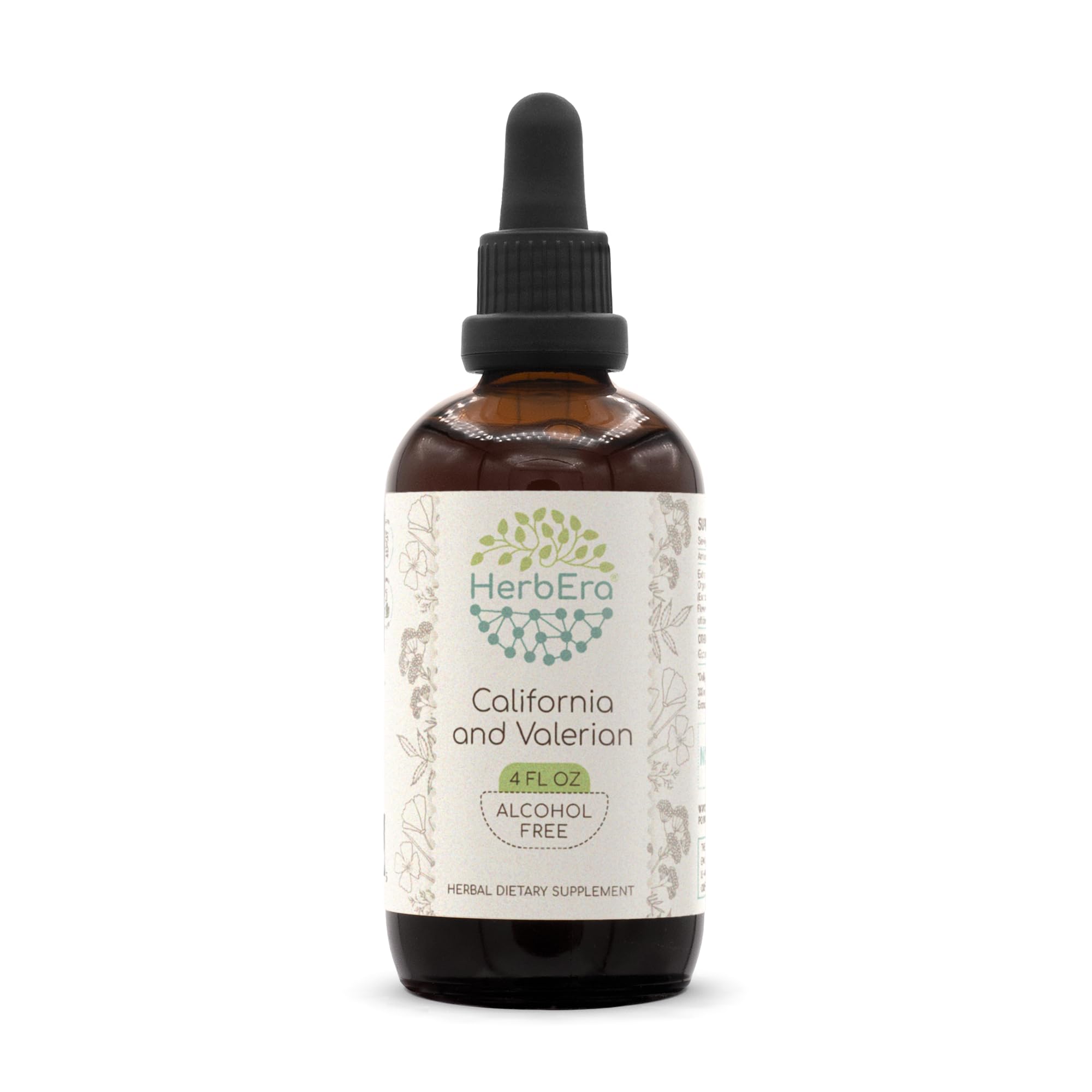 HerbEra California and Valerian B120 Herbal Extract Tincture, Concentrated Liquid Drops Natural California Poppy Herb and Flower, Valerian (Valeriana Officinalis) Dried Herbs 4 fl oz 4 Fl Oz (Pack of 1)