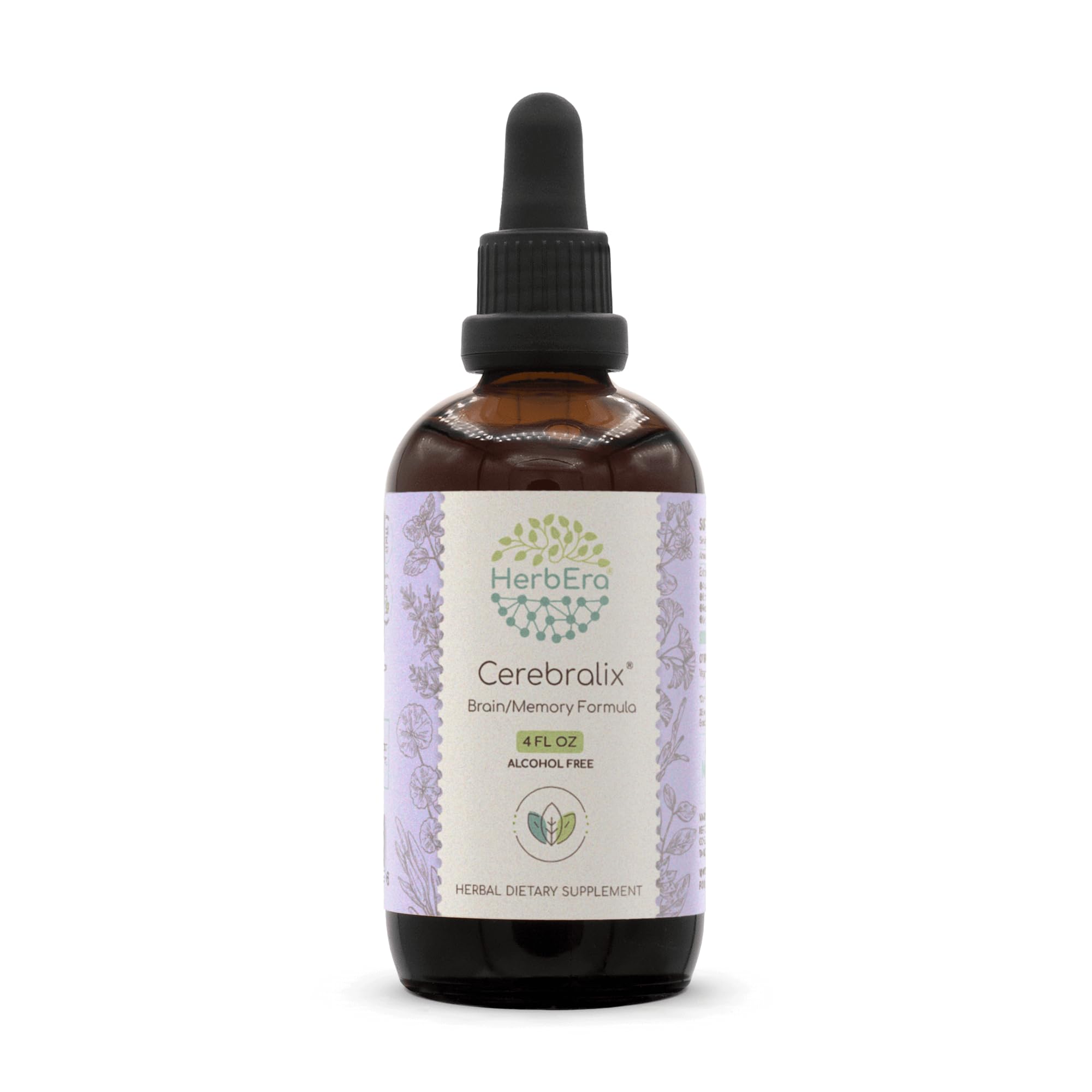 HerbEra Cerebralix B120 Alcohol-Free Extract Tincture: Gotu Kola Herb,Ginkgo Biloba Leaf, Rosemary Leaf, Sage Leaf, Brahmi Herb, Ashwagandha Root, Lemon Balm Leaf. Brain/Memory Formula 4 Fl Oz 4 Fl Oz (Pack of 1)