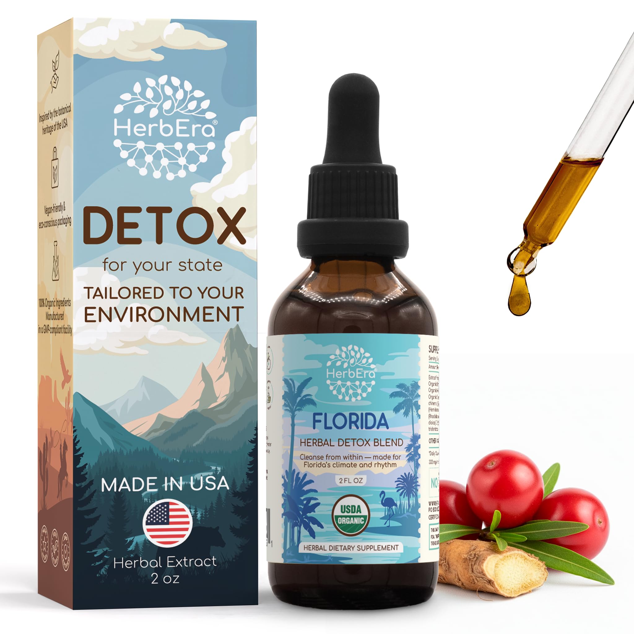 HerbEra Florida Herbal Detox Blend - USDA Organic Extract Made in USA | Immune & Liver Support Liquid Drops | Dandelion Root Milk Thistle Rhodiola Sarsaparilla Schisandra | 2 fl oz