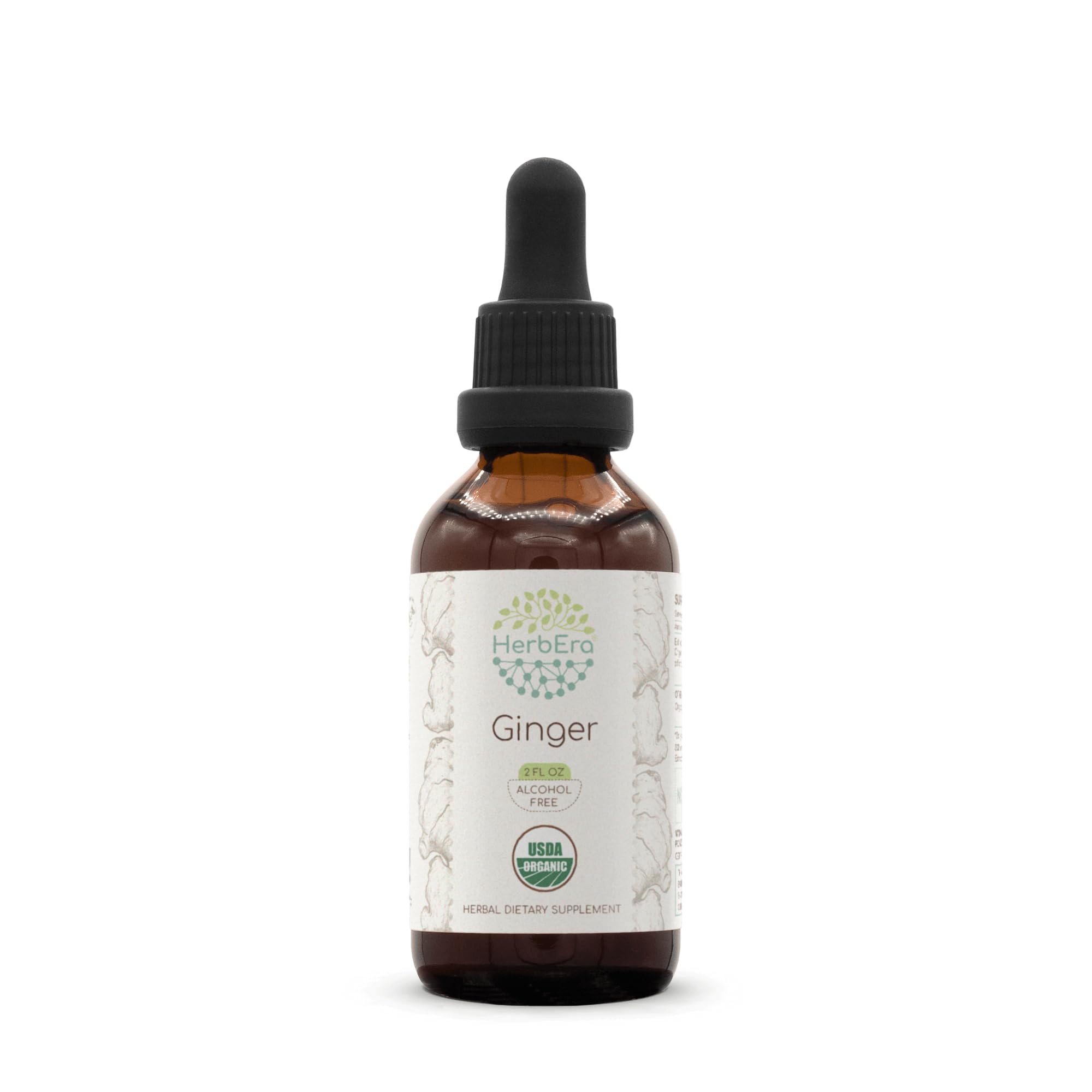 HerbEra Ginger B60 USDA Organic Tincture | Alcohol-Free Extract, High-Potency Herbal Drops | Certified Organic Ginger (Zingiber officinale) Dried Root (2 oz) 2 Fl Oz (Pack of 1)