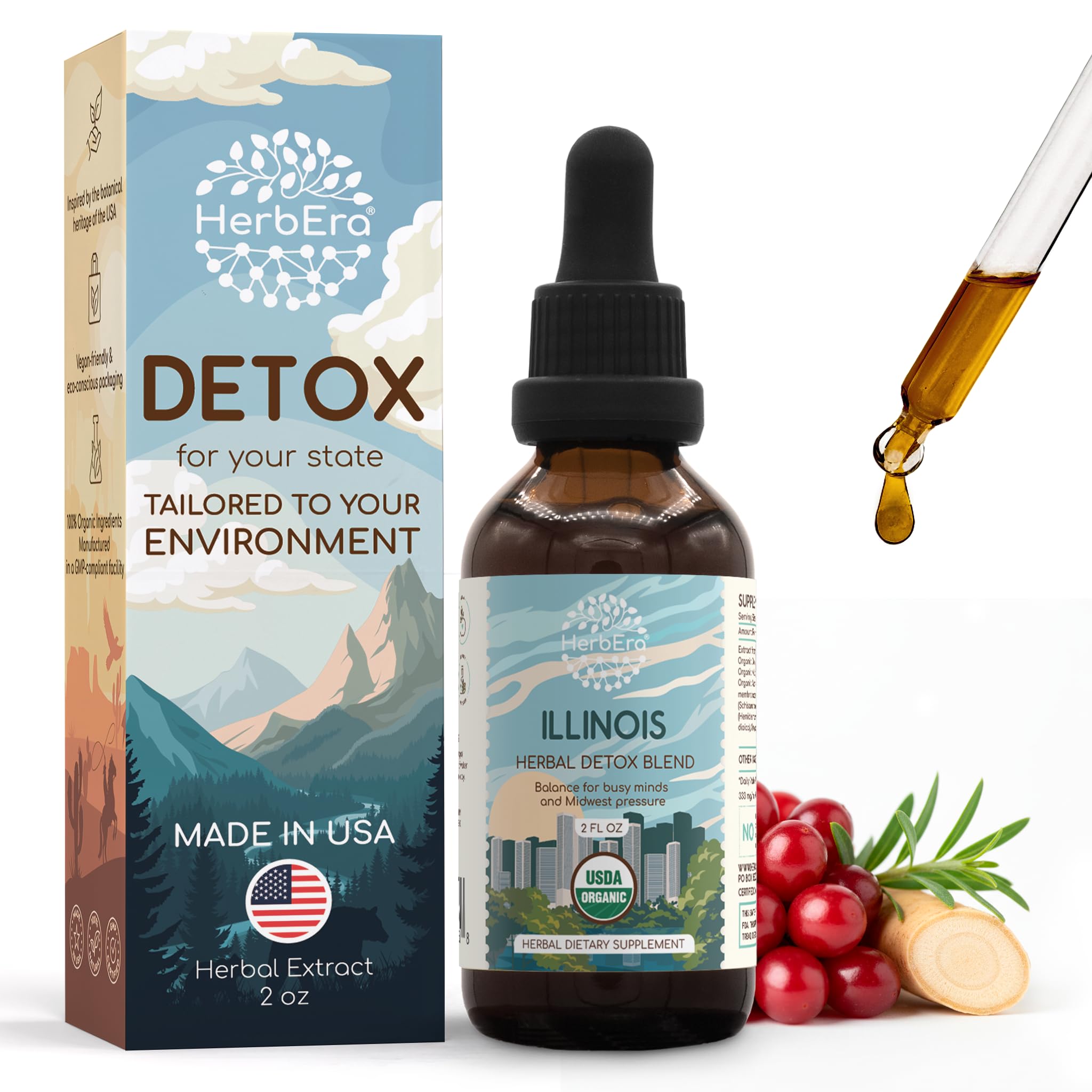HerbEra Illinois Herbal Detox Blend - USDA Organic Extract Made in USA | Immune & Liver Support Liquid Drops | Astragalus Dandelion Root Milk Thistle Sarsaparilla | 2 fl oz