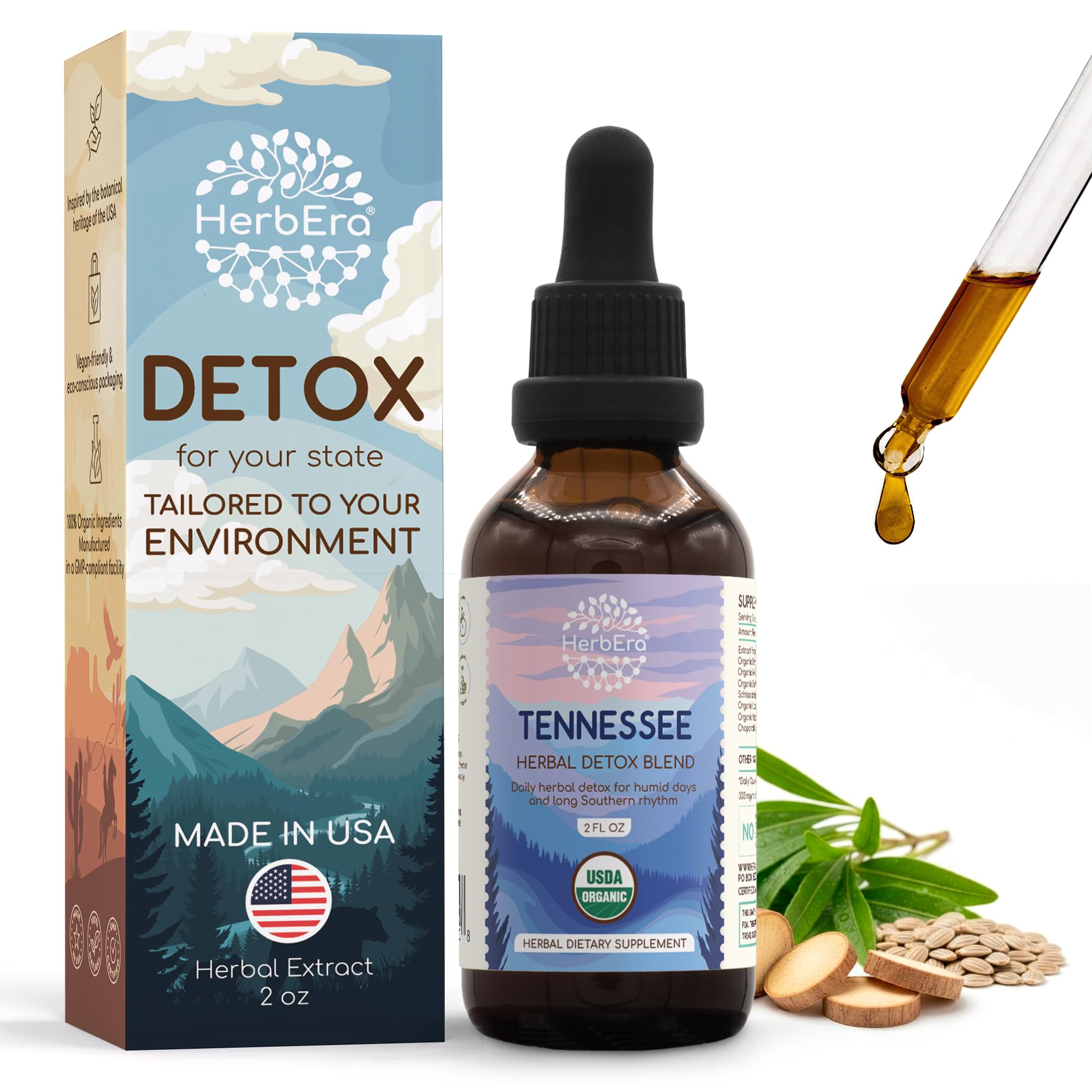 HerbEra Tennessee Herbal Detox Blend - USDA Organic Extract Made in USA | Immune & Liver Support Liquid Drops | Burdock Dandelion Root Licorice Milk Thistle Schisandra | 2 fl oz
