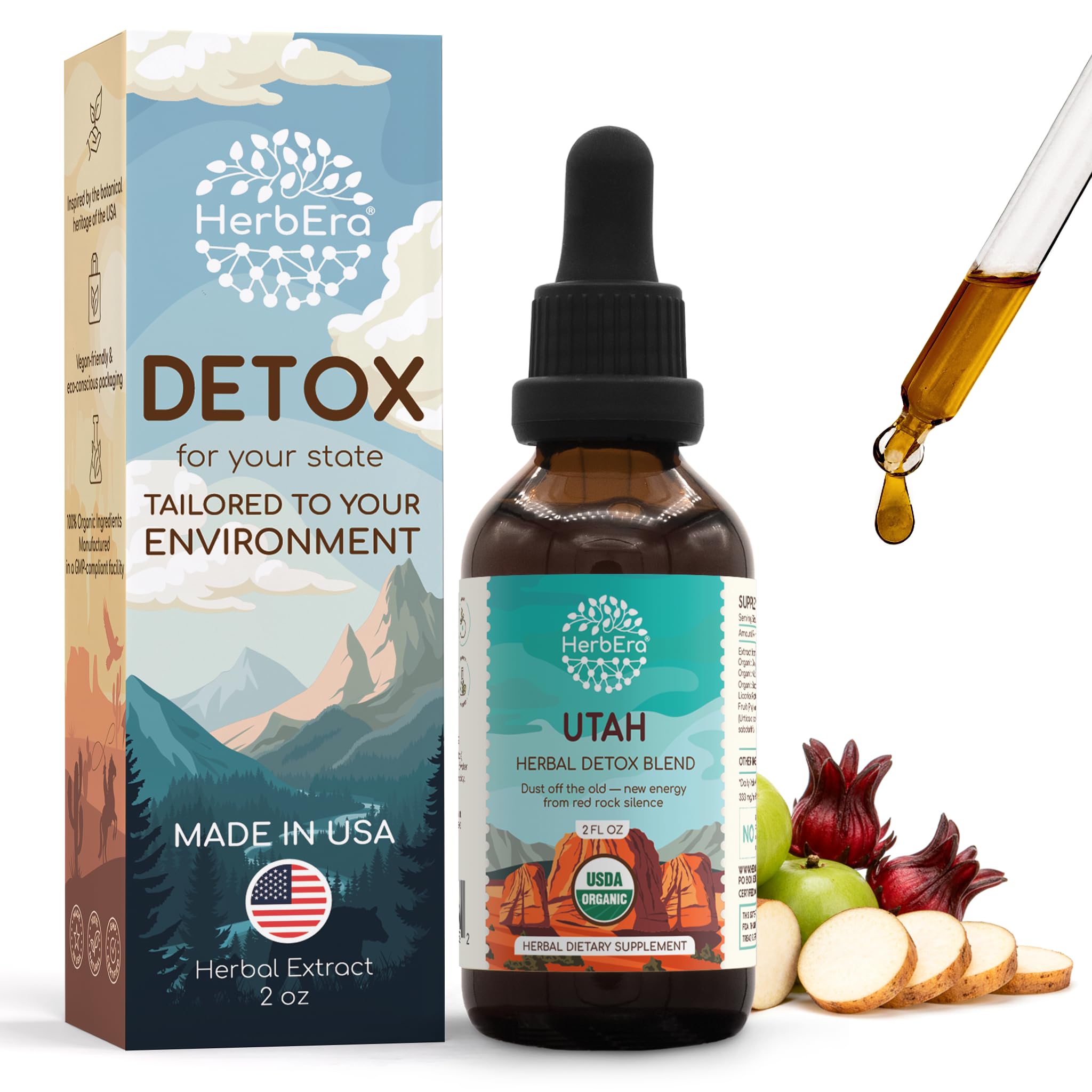HerbEra Utah Herbal Detox Blend - USDA Organic Extract Made in USA | Immune & Liver Support Liquid Drops | Amla Burdock Dandelion Root Licorice Milk Thistle Hibiscus | 2 fl oz